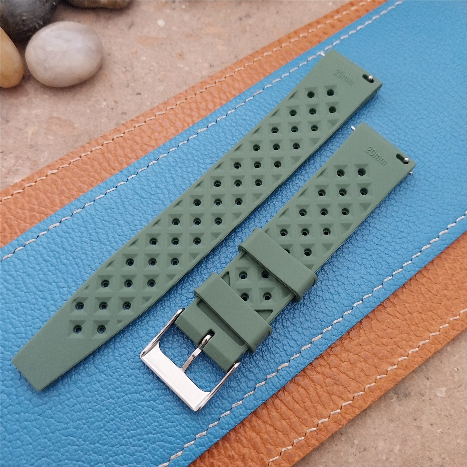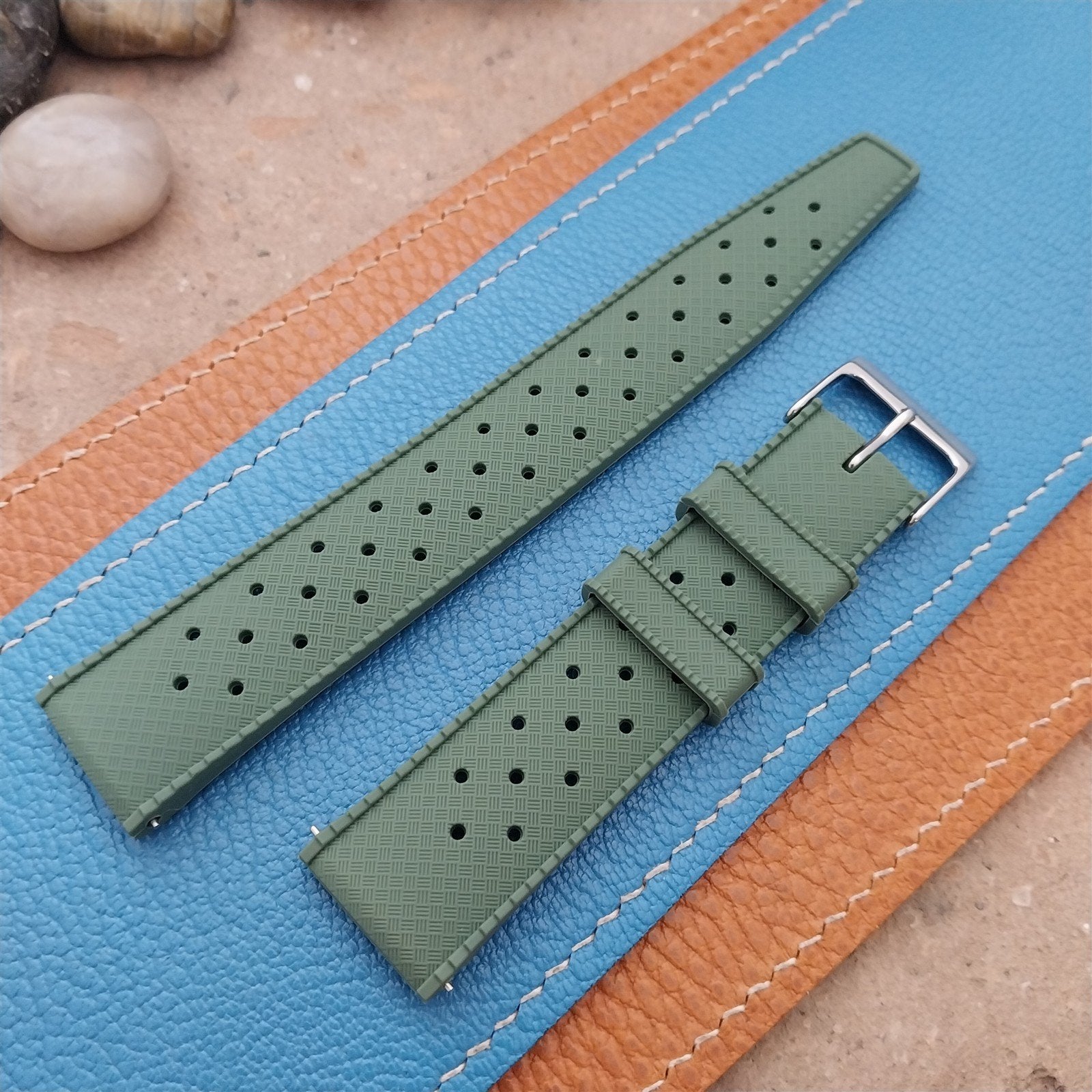 20mm FKM Green Tropical Divers Watch Strap QR Spring Bars Polished Buckle