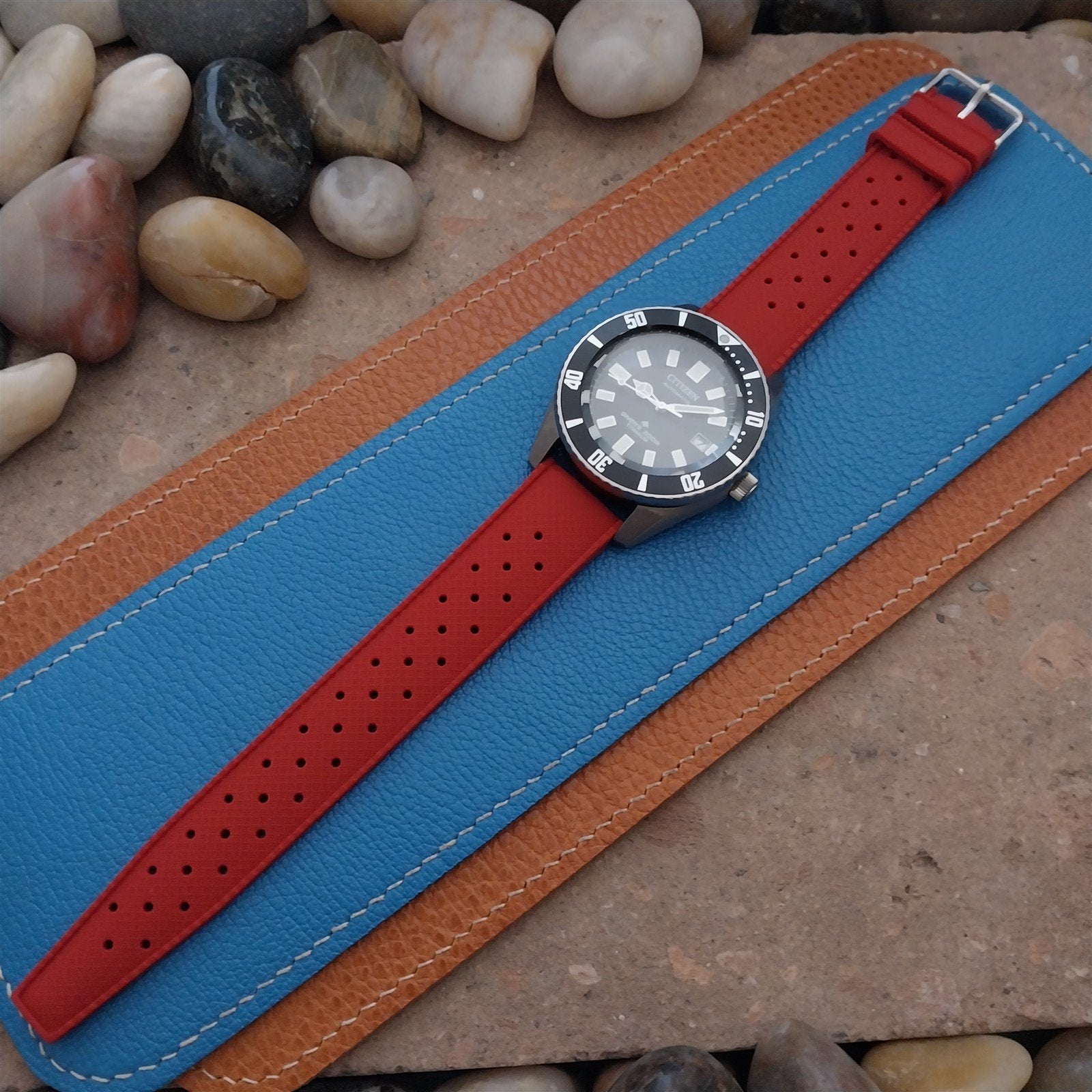 20mm FKM Red Tropical Divers Watch Strap QR Spring Bars & Polished Buckle