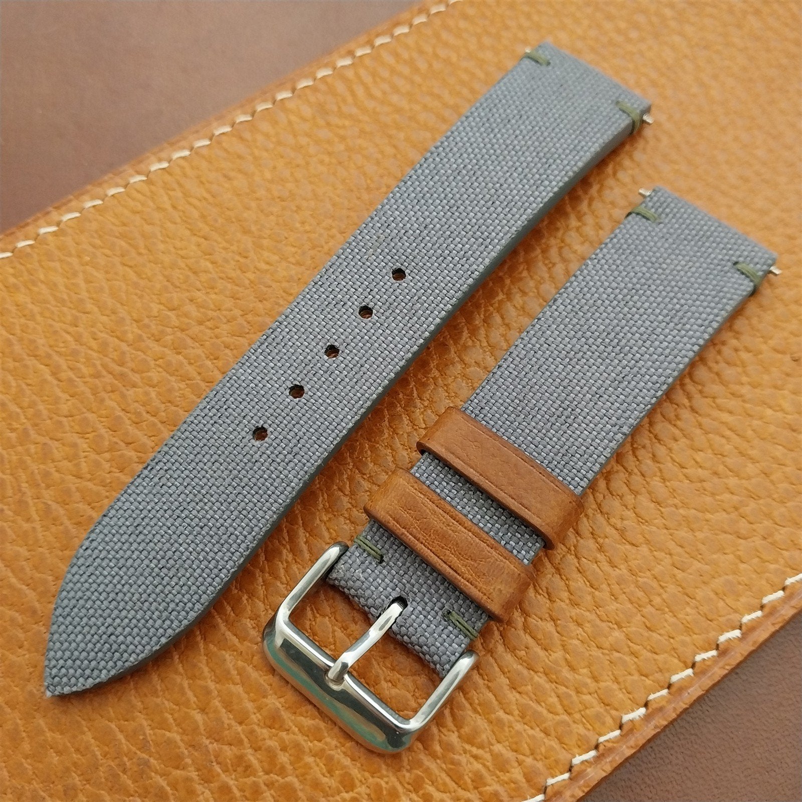 20mm HDStraps Gray Canvas & Leather Unused 20/18 Watch Strap