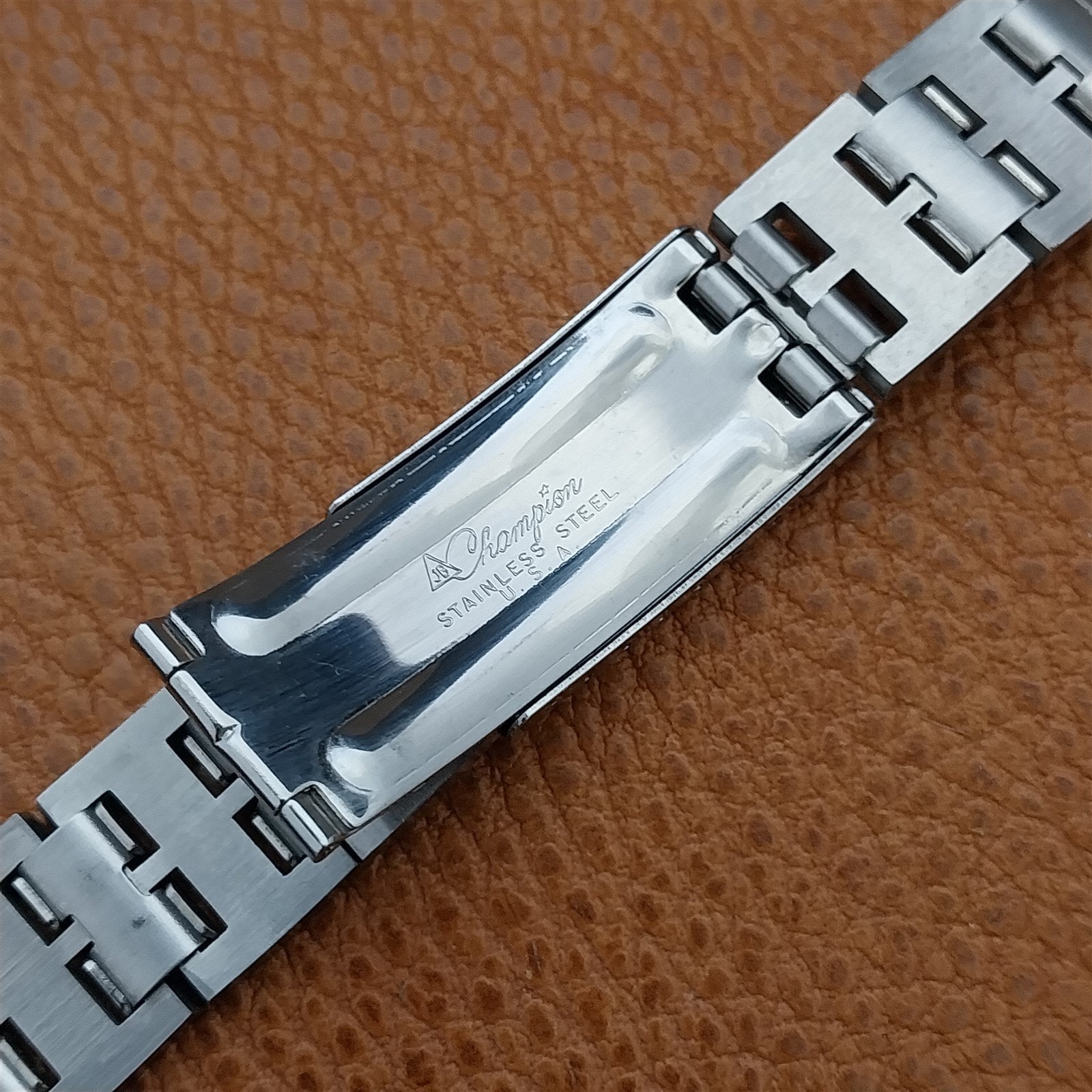 - NOS unused 1960s-1970s old-stock JB Champion stainless steel deployment watch bracelet.