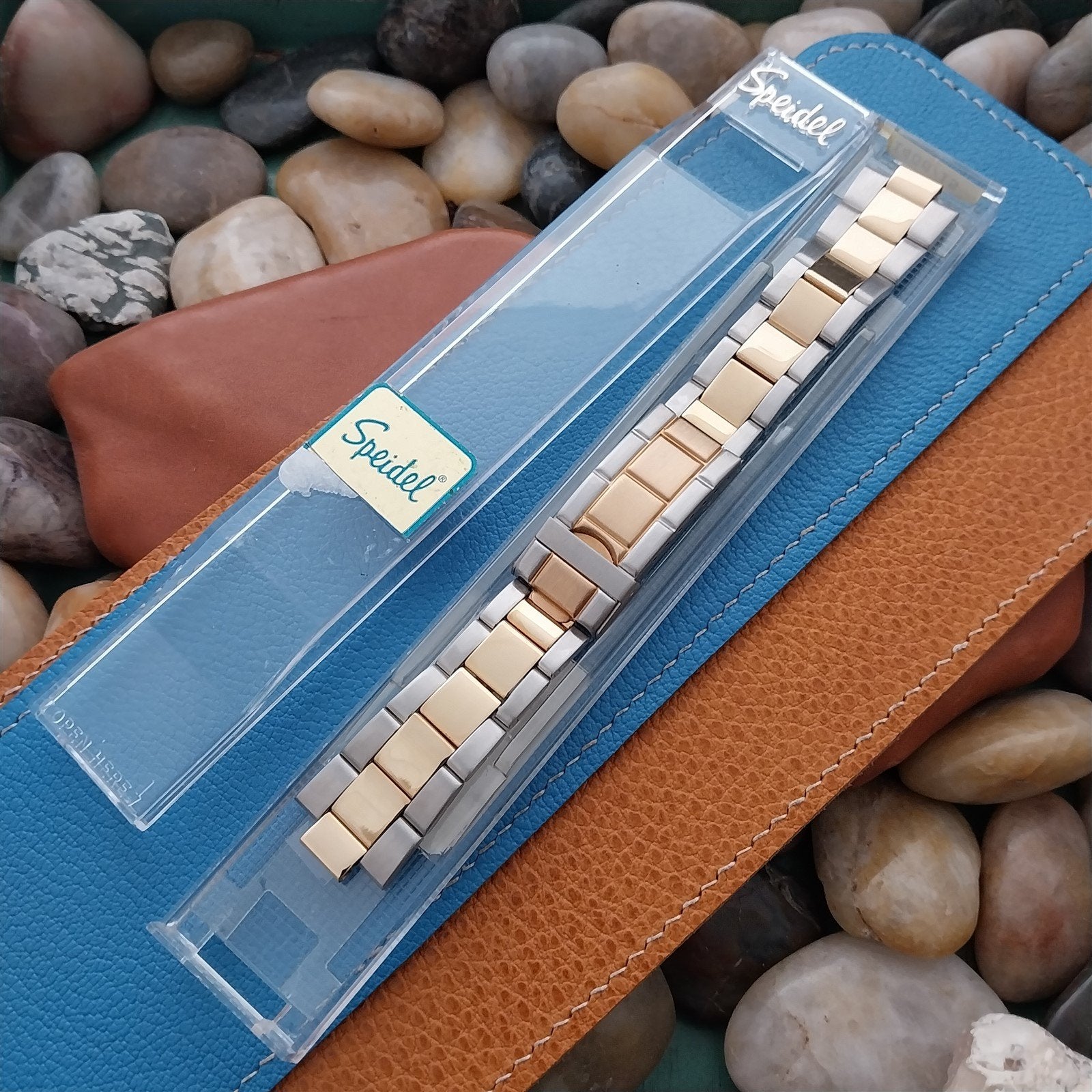 - Unused yellow gold-tone & stainless steel Speidel watch bracelet.
