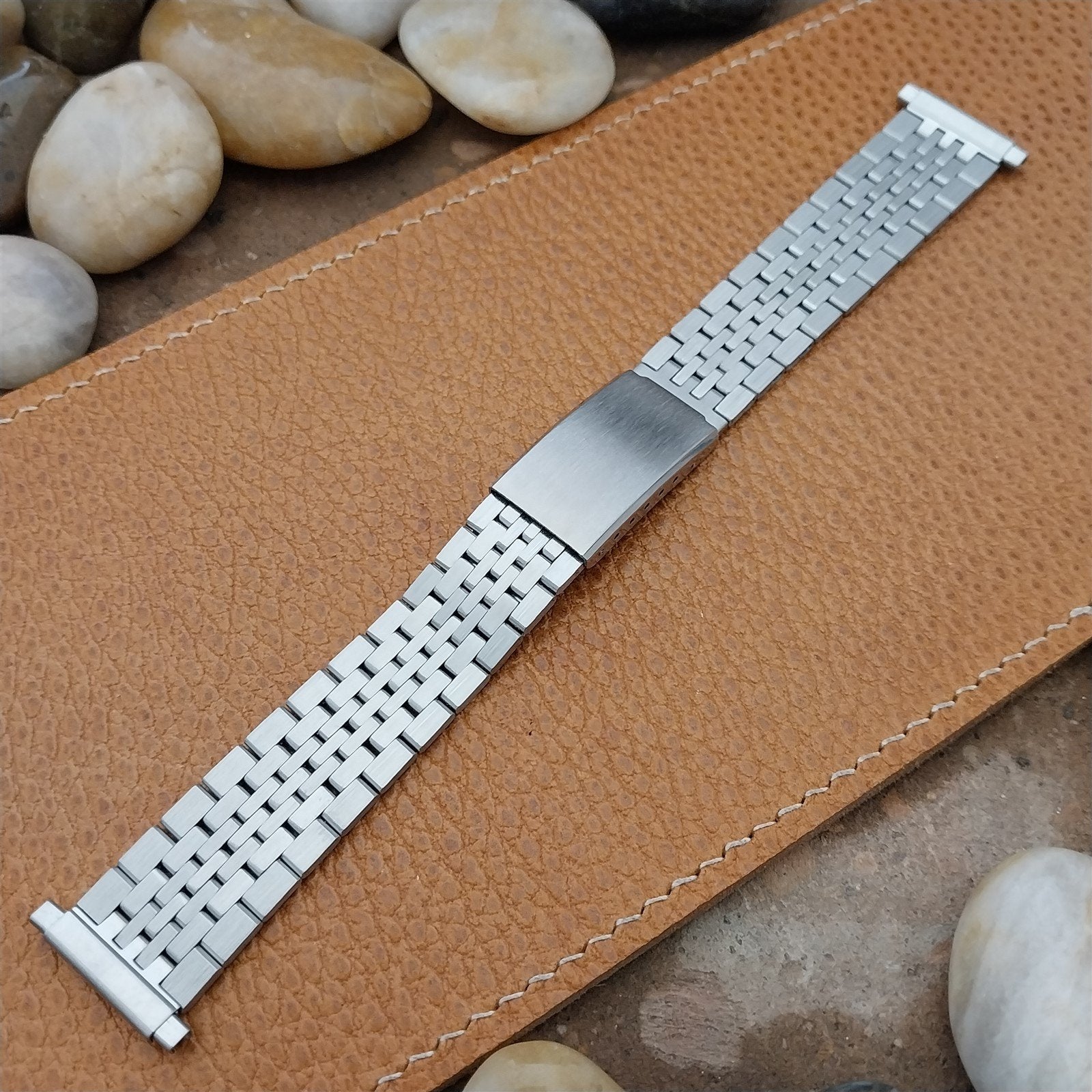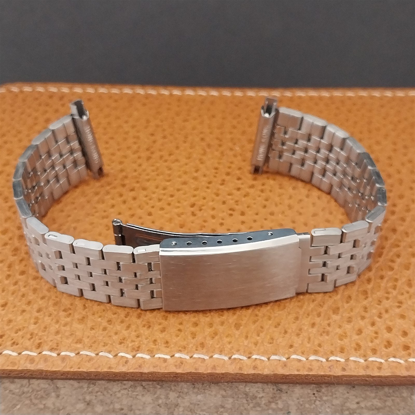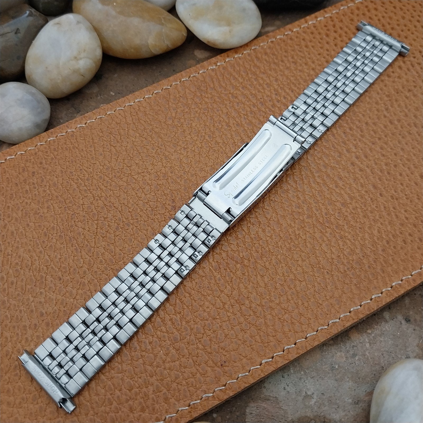 - NOS unused old-stock Speidel stainless steel fold-over clasp watch band.