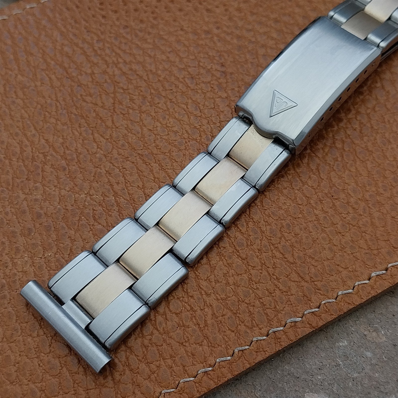 - NOS 1960s-1970s old-stock JB Champion two-tone brushed stainless steel and yellow gold-filled spring-link deployment watch bracelet.