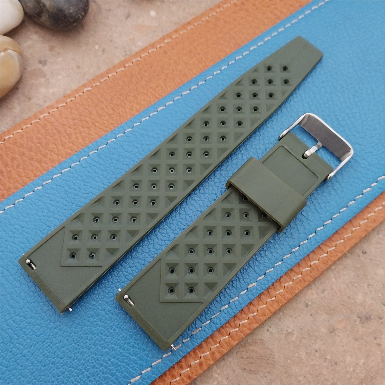 22mm FKM Green Tropical Divers Watch Strap QR Spring Bars Polished Buckle