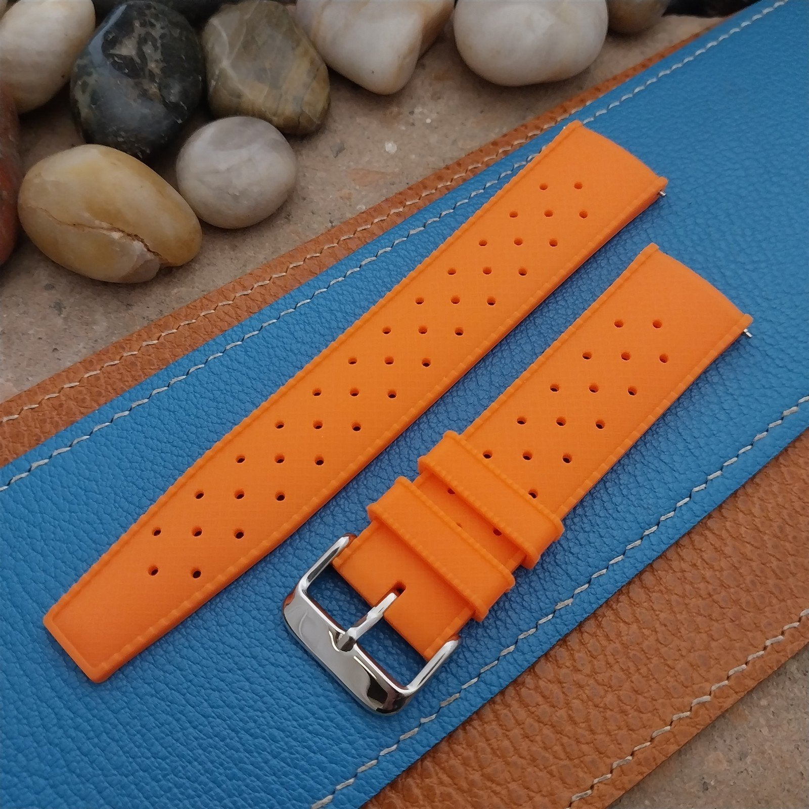 22mm FKM Tropical Orange Tapered Divers Watch Strap & Quick Release Spring Bars