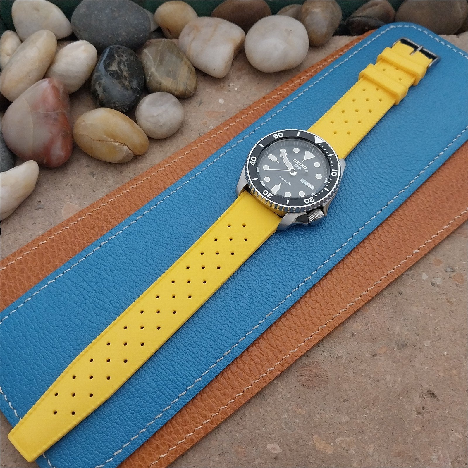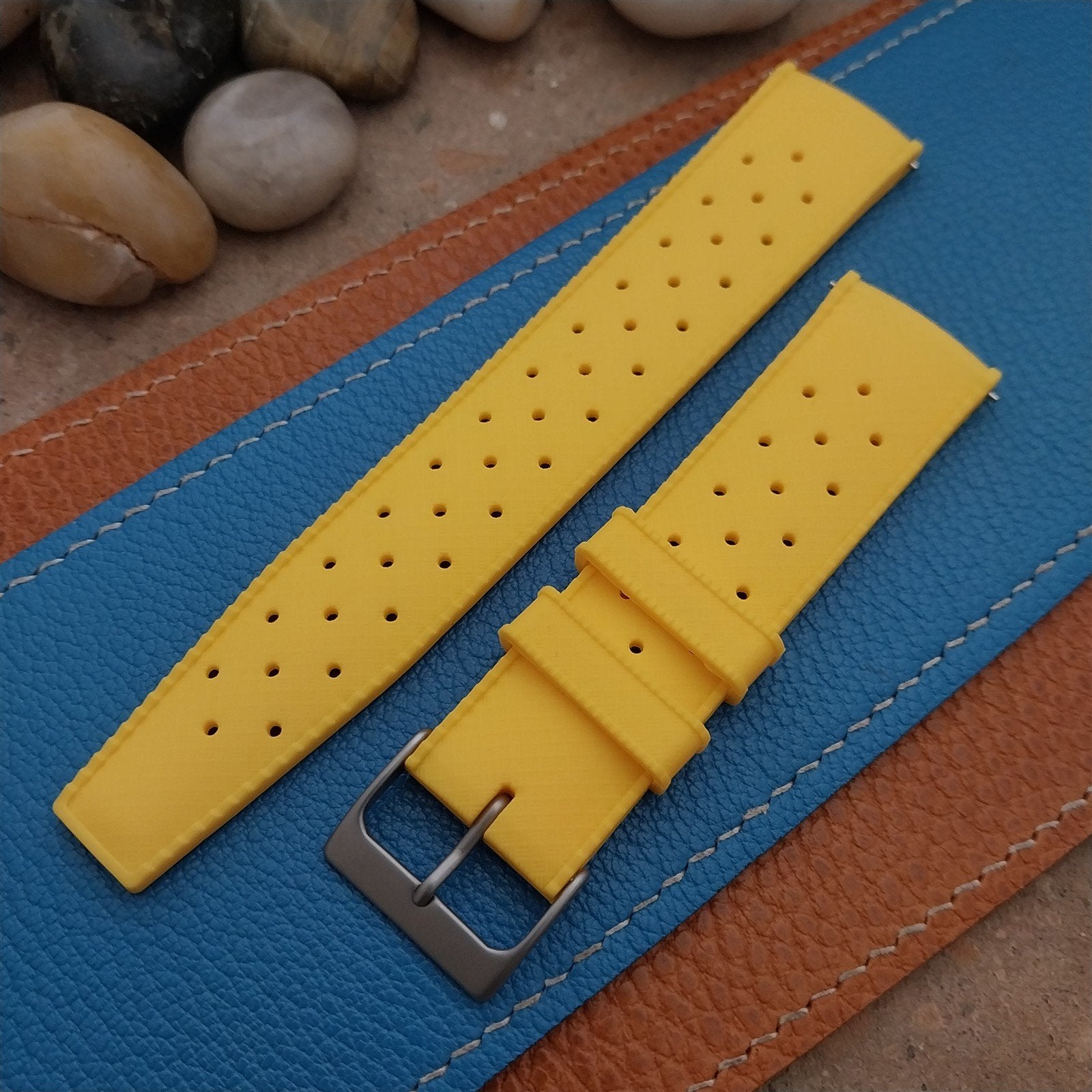 22mm FKM Tropical Yellow Divers Watch Strap QR Spring Bars & Bead Blasted Buckle