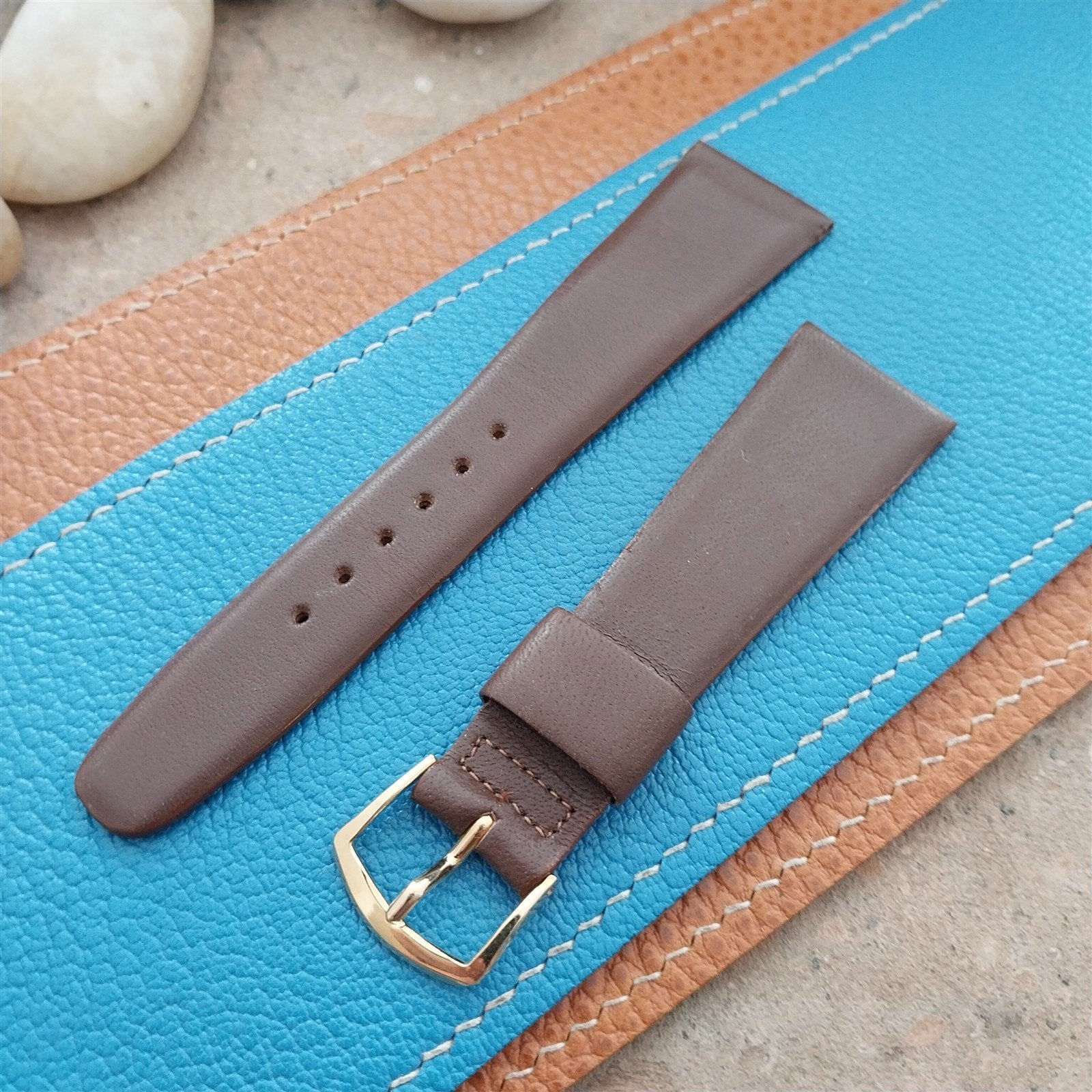 22mm Speidel Brown Leather nos Unused Classic Tapered 1970s Vintage Watch Strap