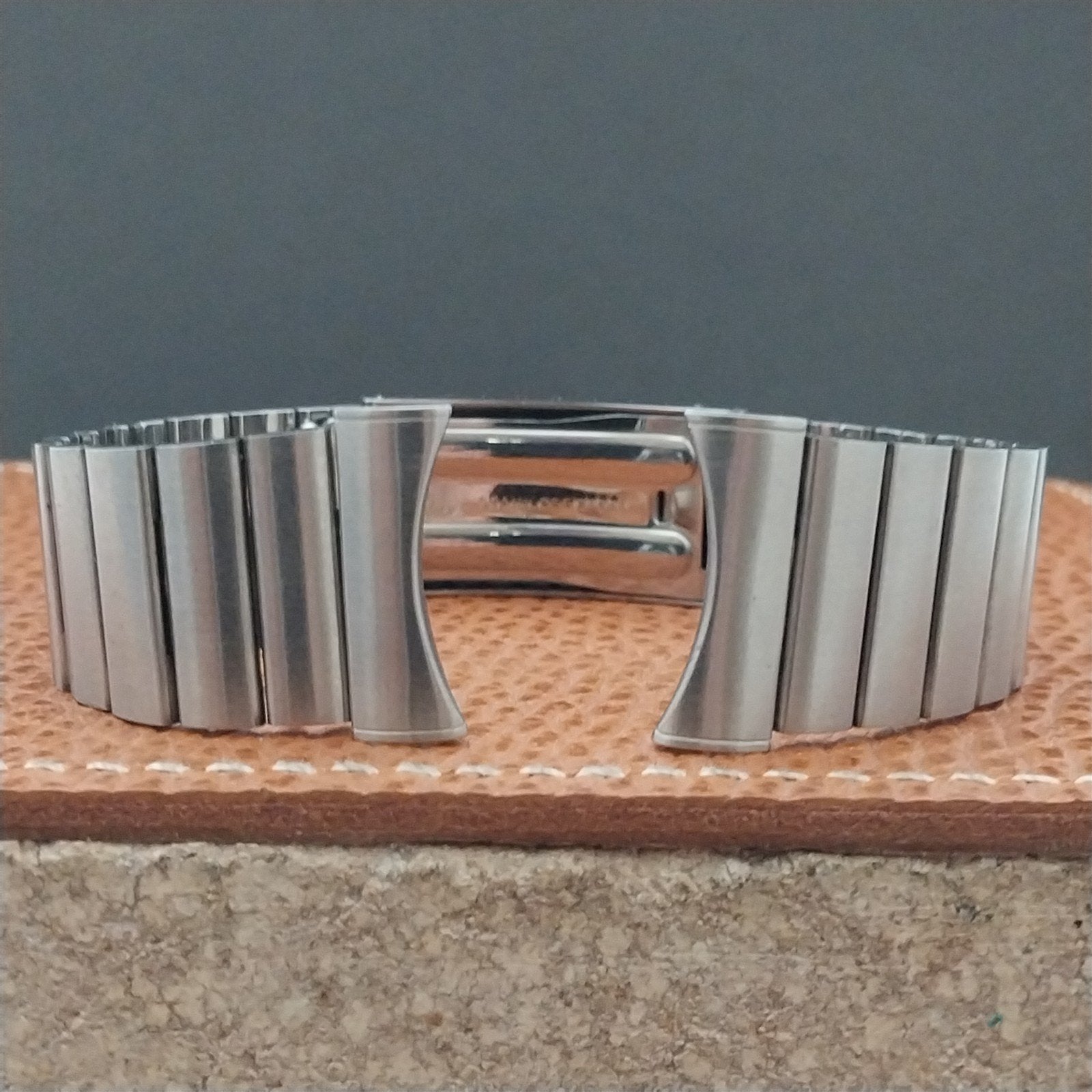 - NOS unused 1960s-1970s old-stock Kreisler Stelux stainless steel bar-link deployment watch bracelet.