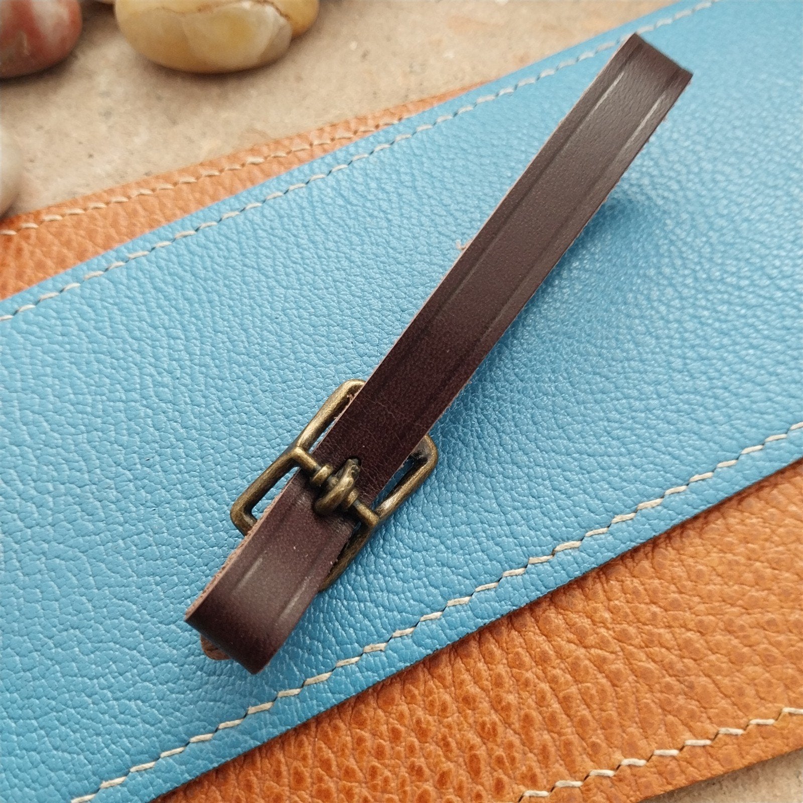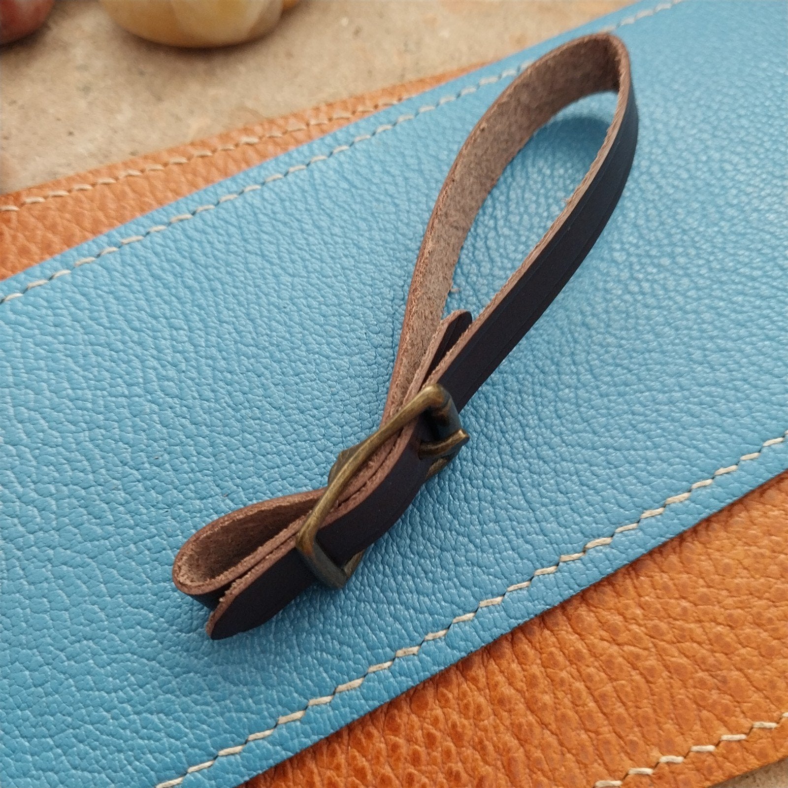 - USA made brown English Bridle leather fob strap.