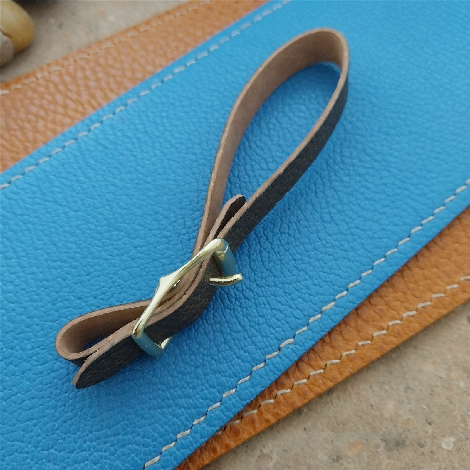 3/8" Gray Pigskin Leather Watch Fob Strap & Polished Brass Finish Buckle