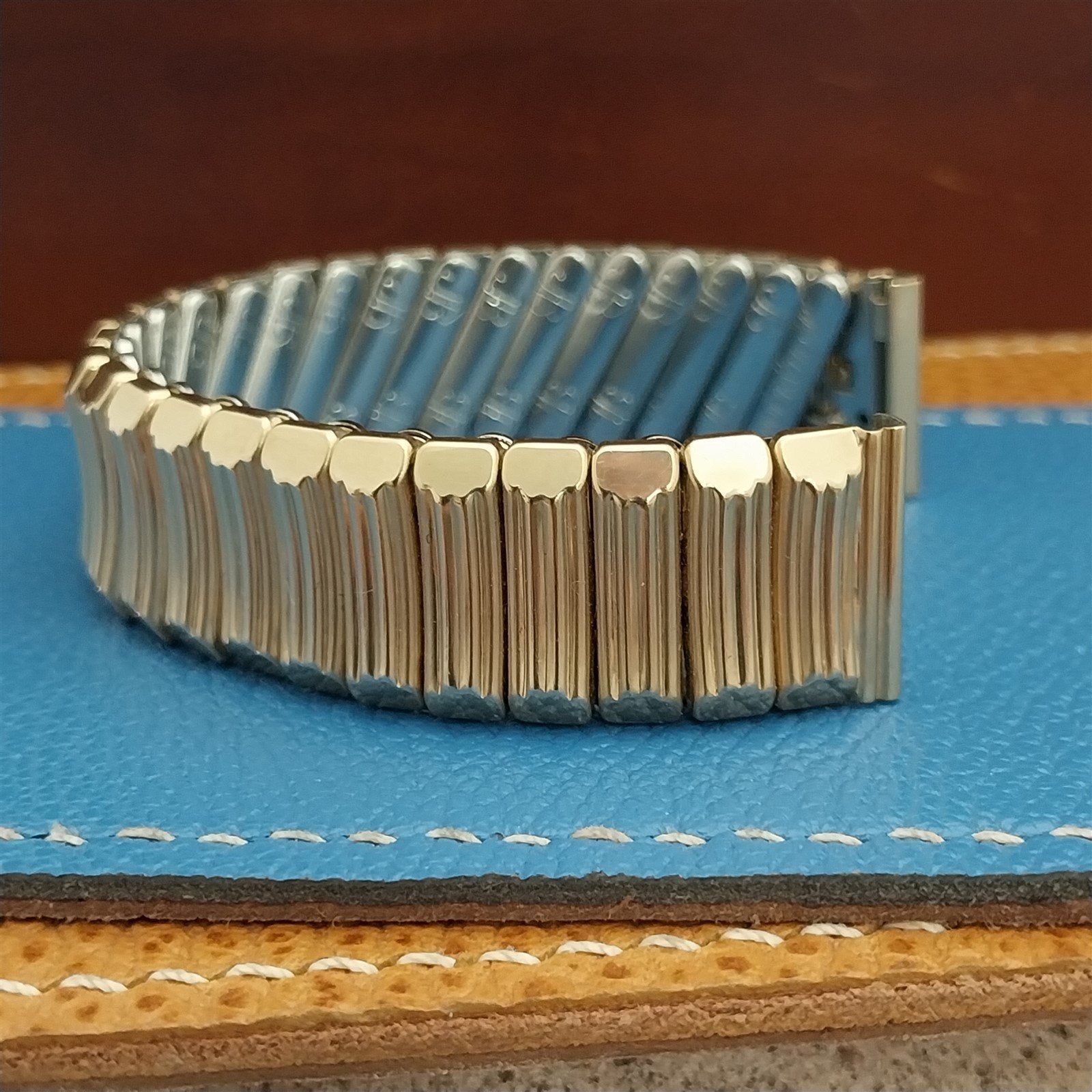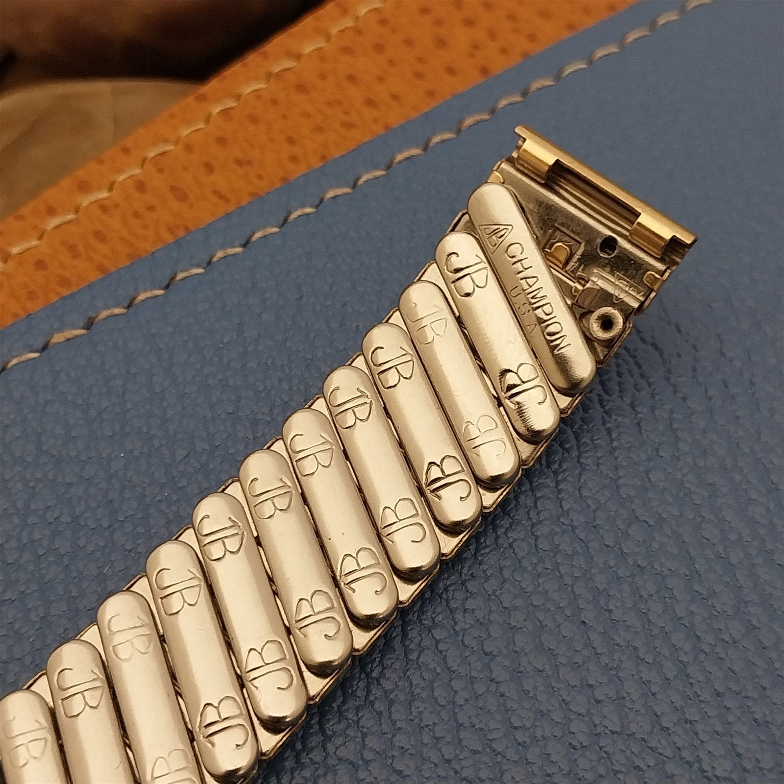 - NOS unused 1950s old-stock JB Champion 1/15 12k yellow gold-filled scissor-expansion watch bracelet.