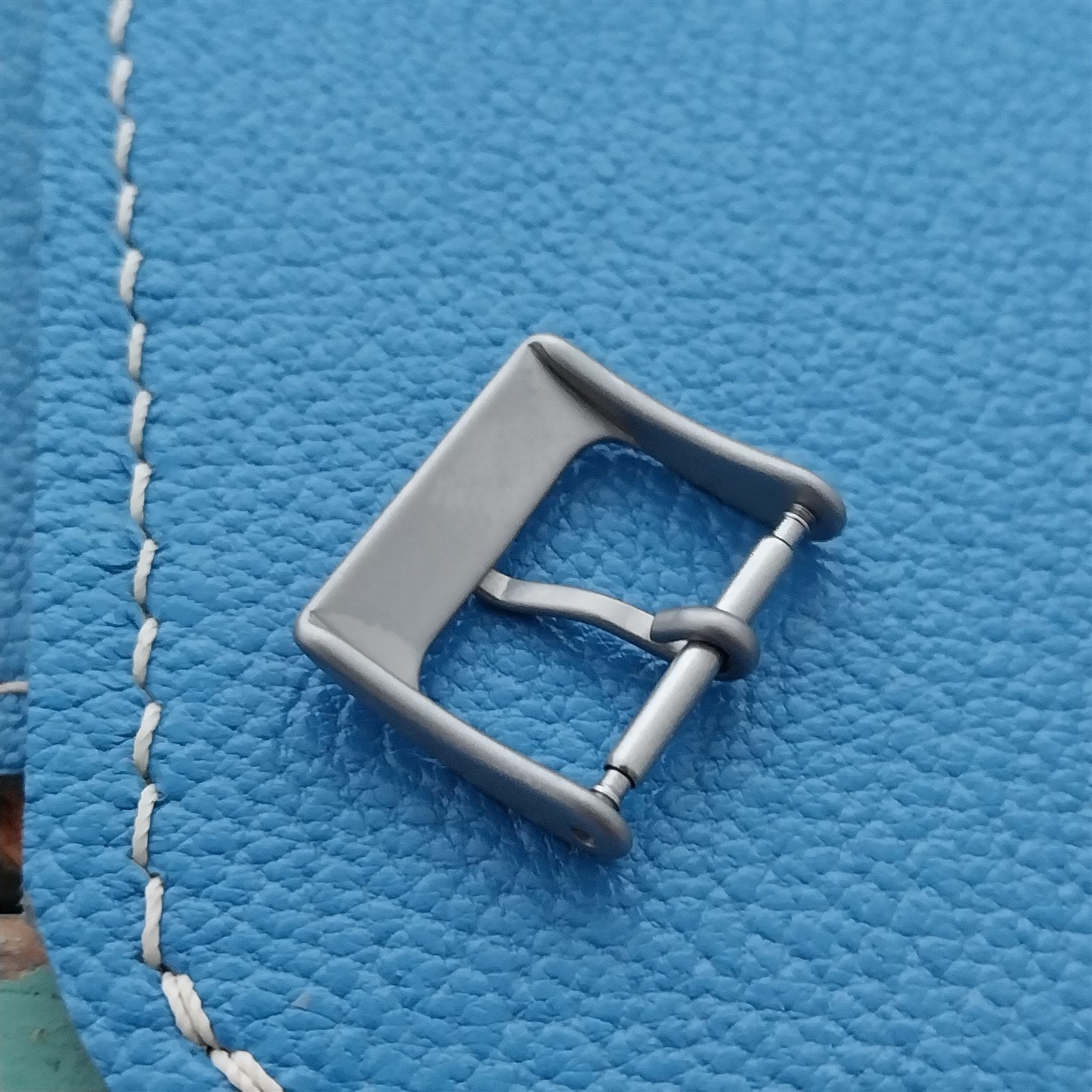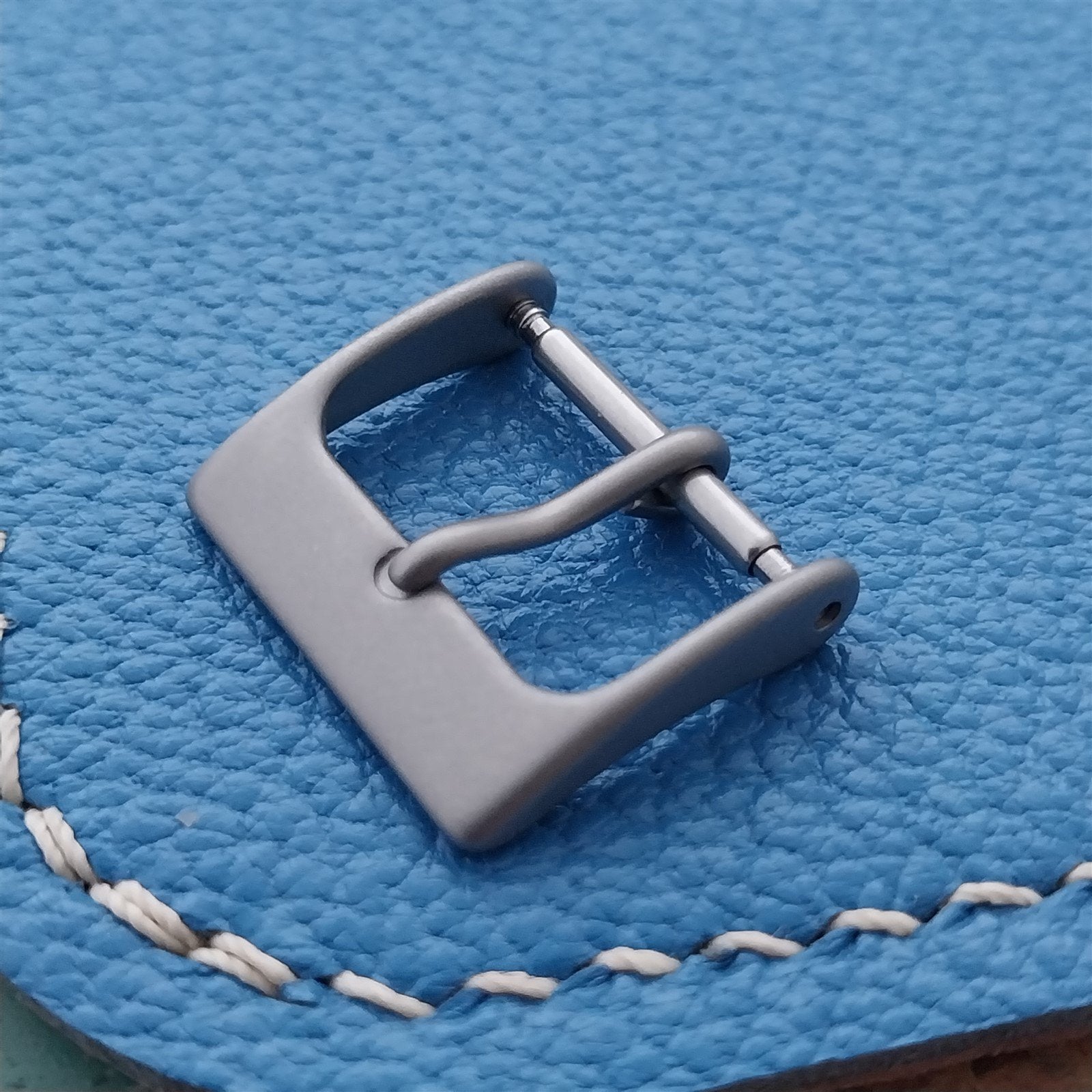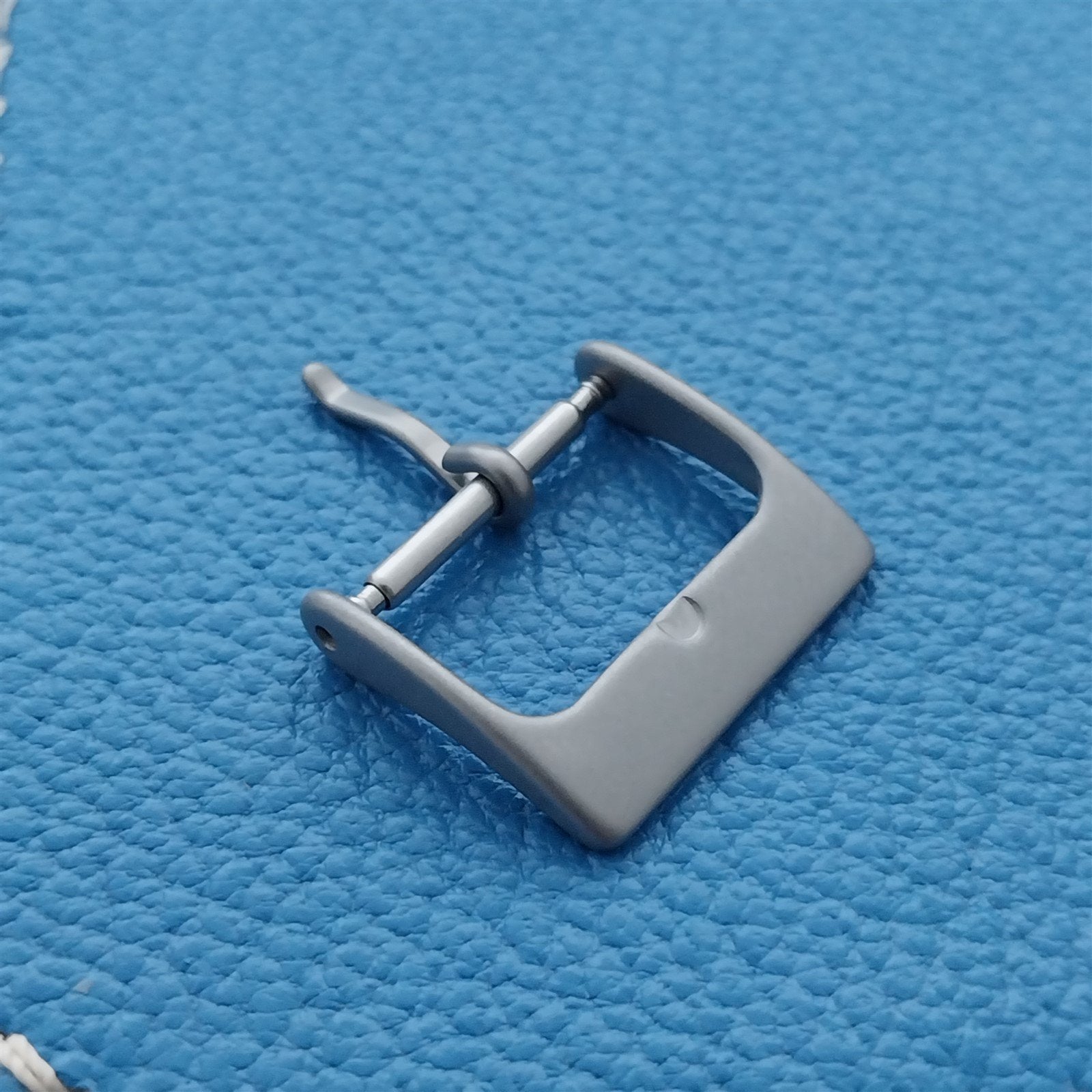 - Sturdy current production matte bead blasted stainless steel watch strap buckle.