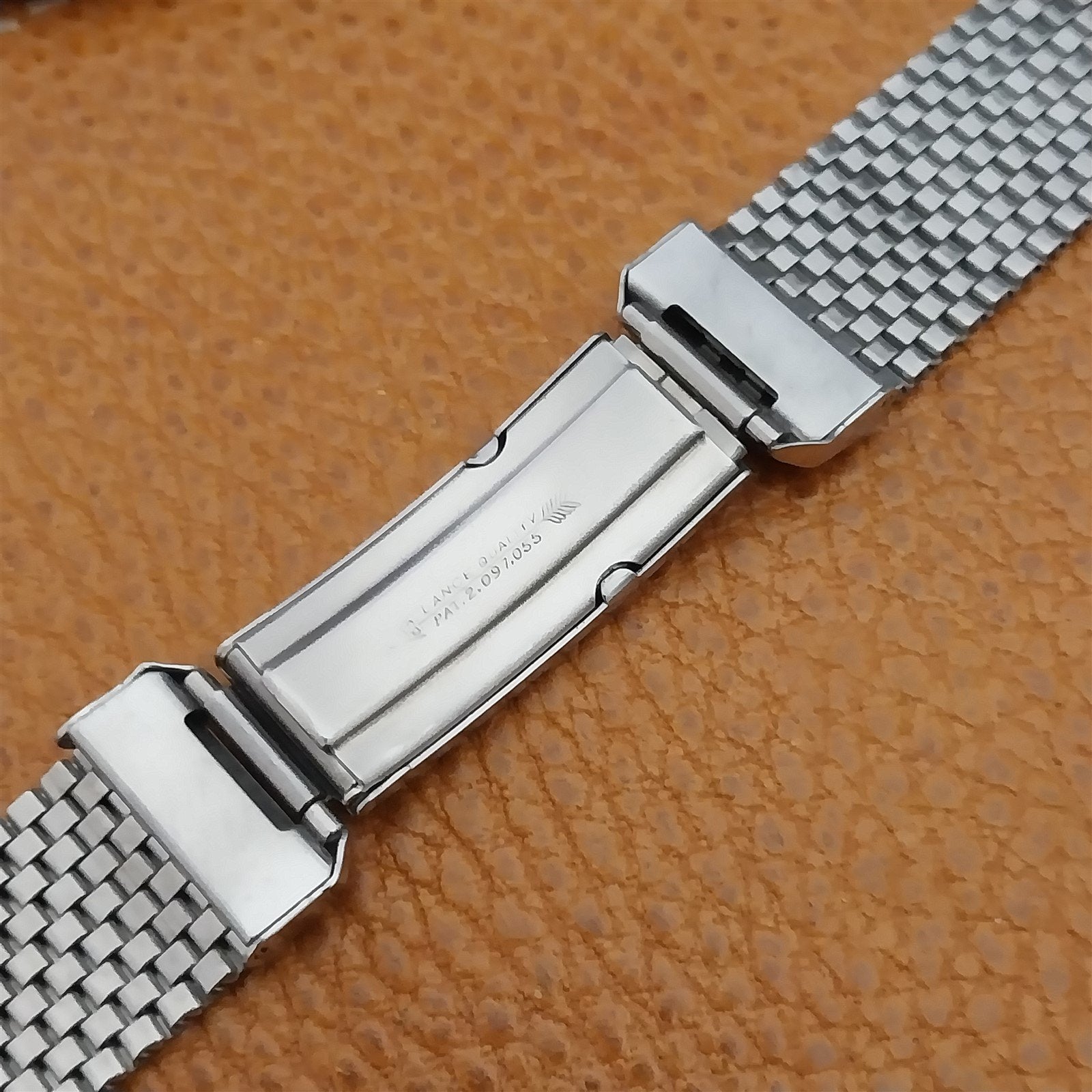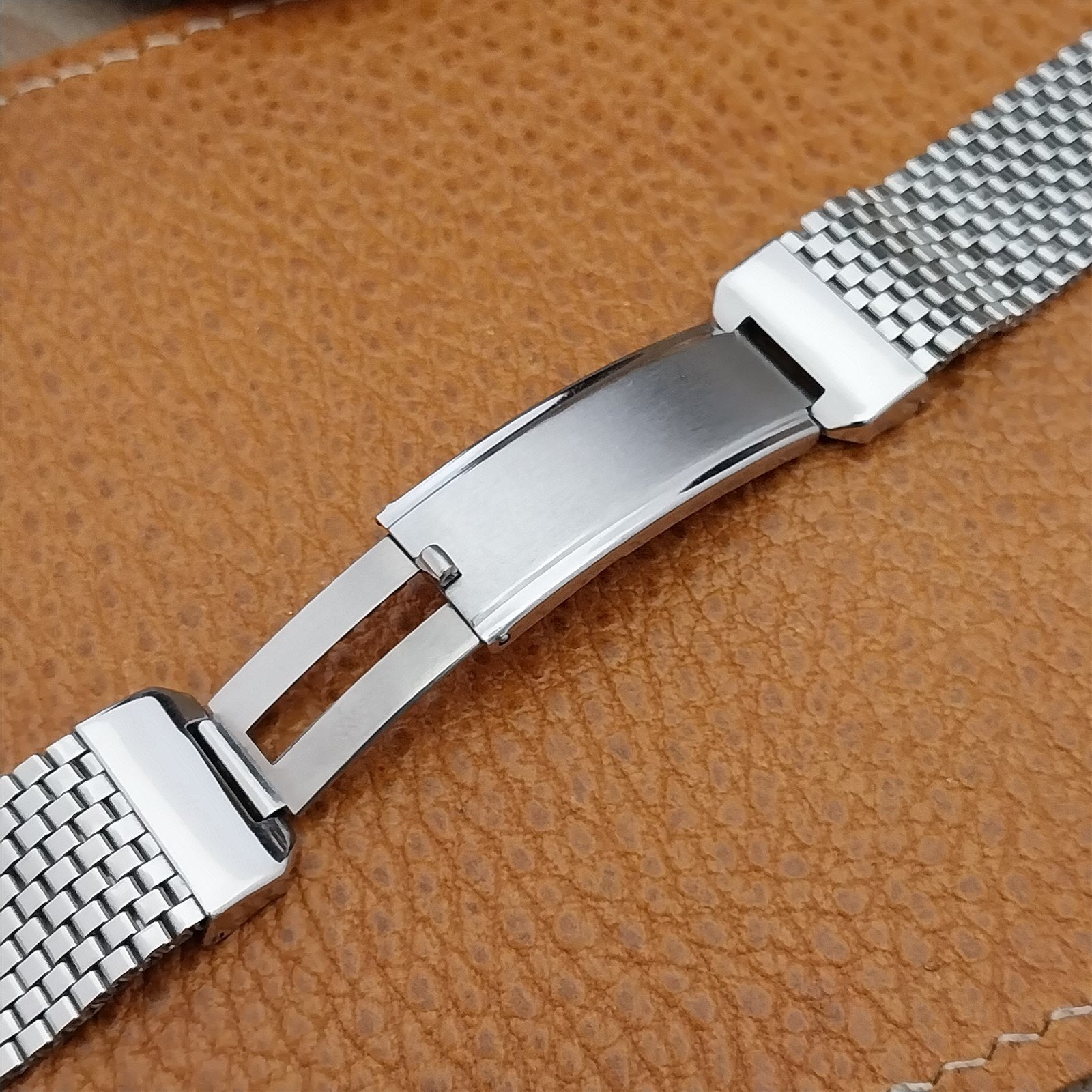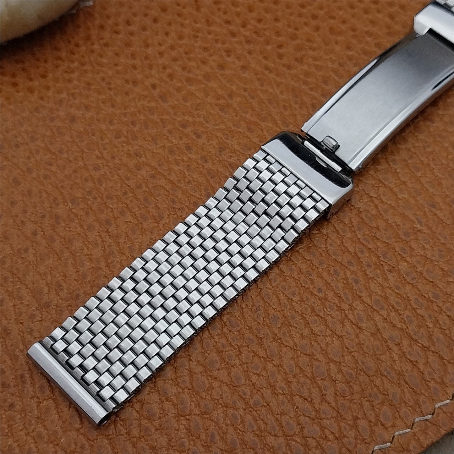 - NOS unused 1940s-1950s JB Champion Lance USA stainless steel basketweave mesh watch bracelet.