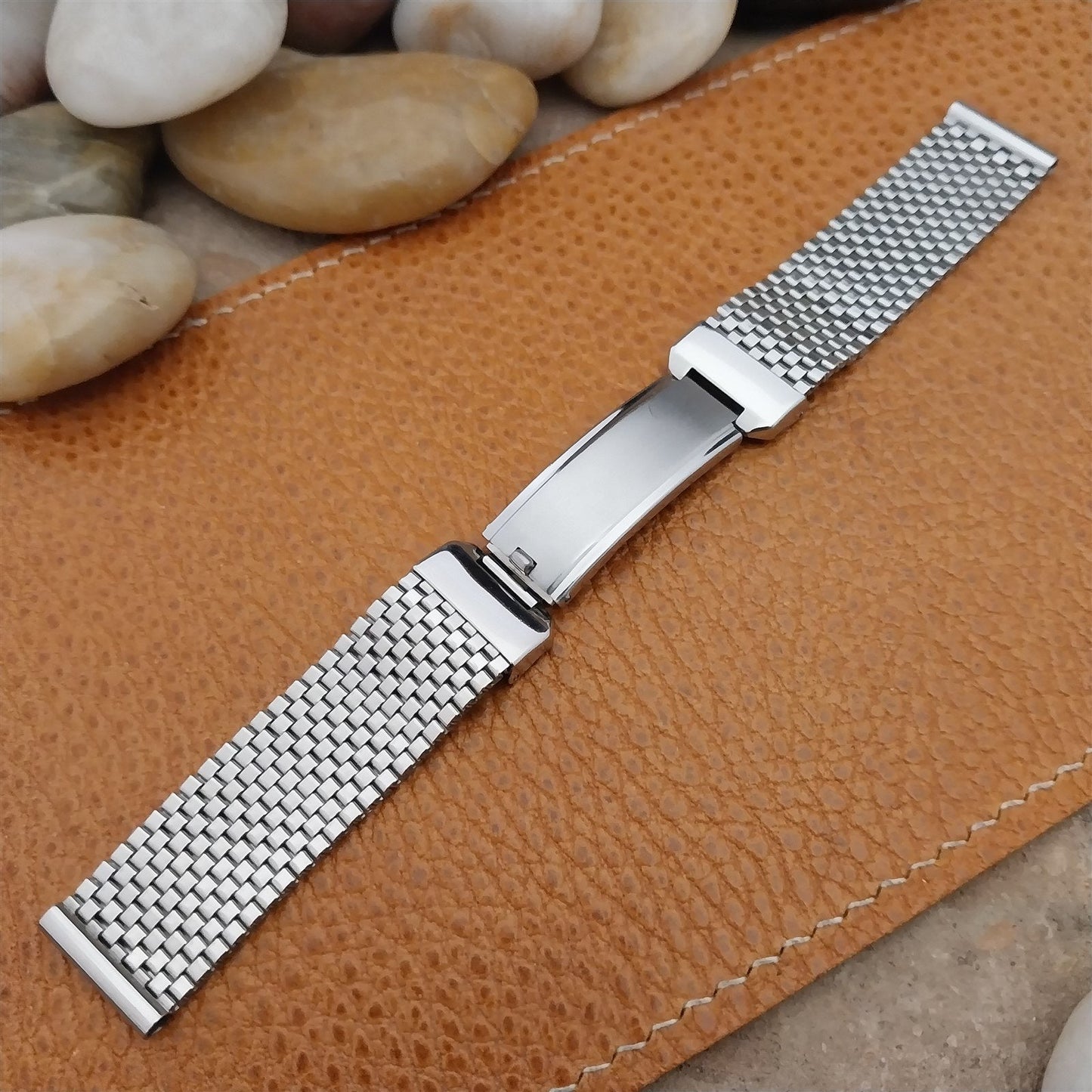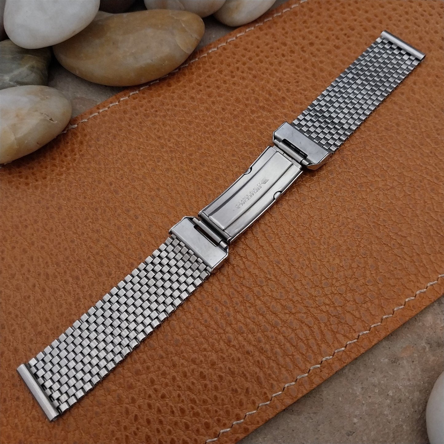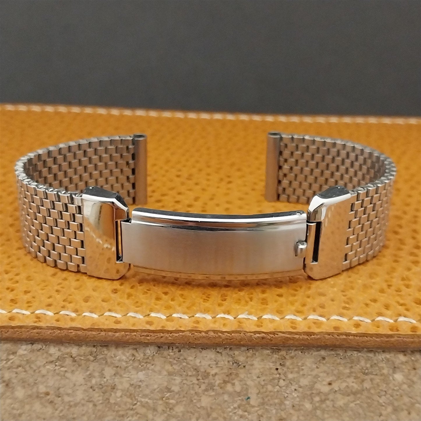 - NOS unused 1940s-1950s JB Champion Lance USA stainless steel basketweave mesh watch bracelet.