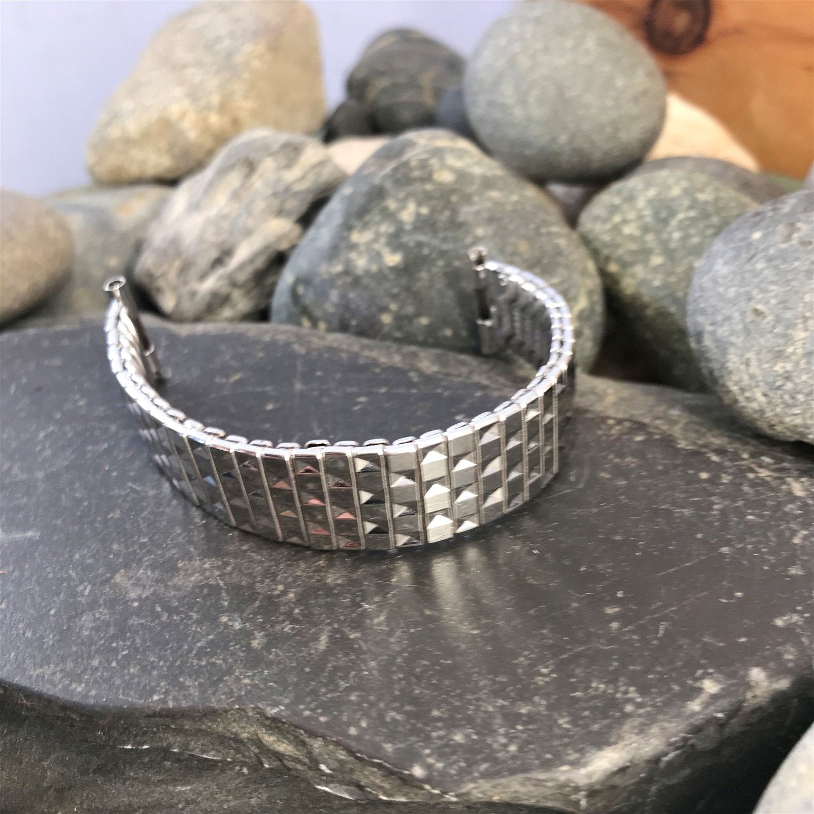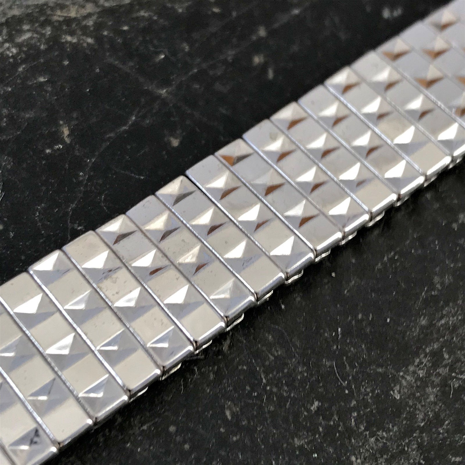 - NOS unused 1950s old-stock Speidel 1/20 10k white gold-filled twist-o-flex expansion watch band.