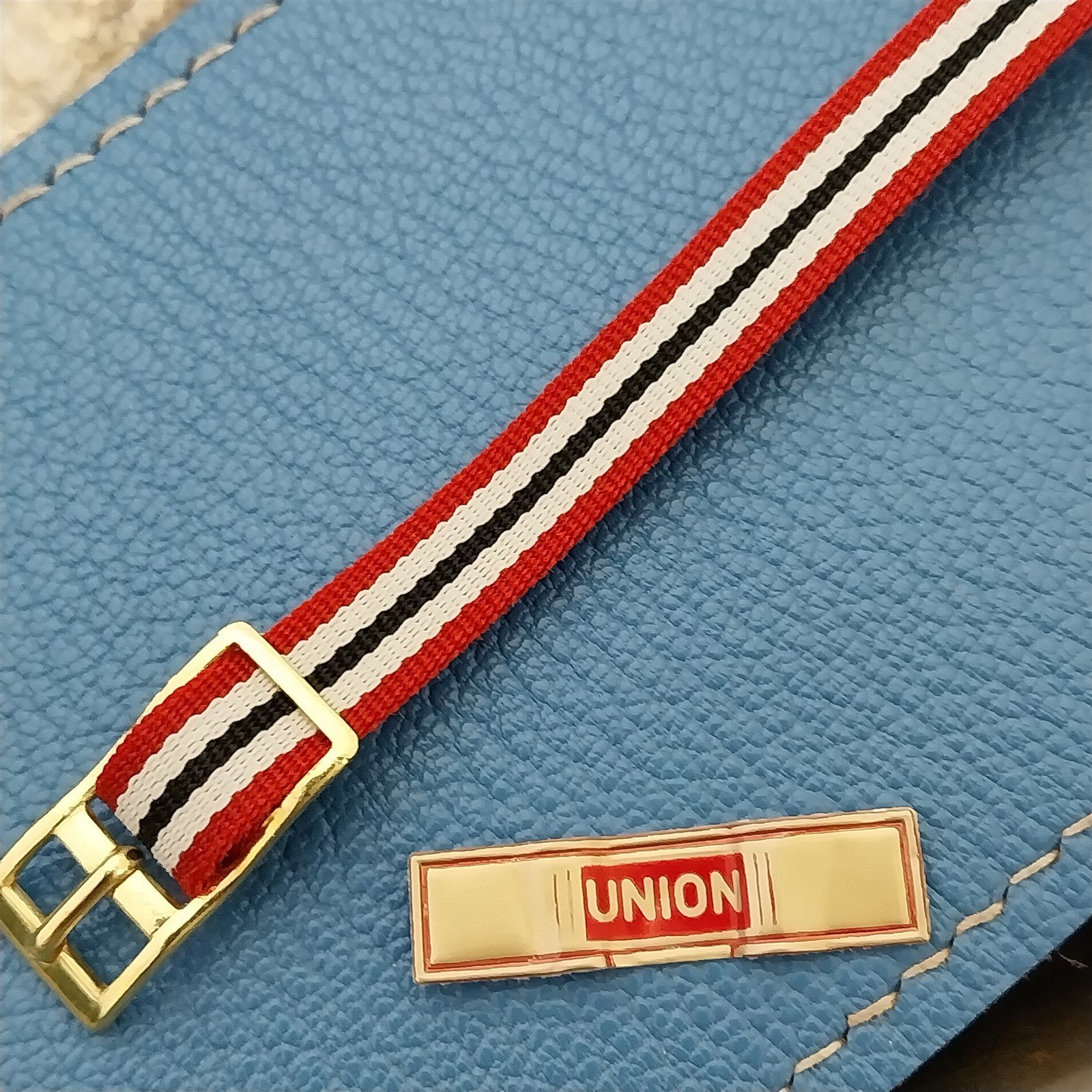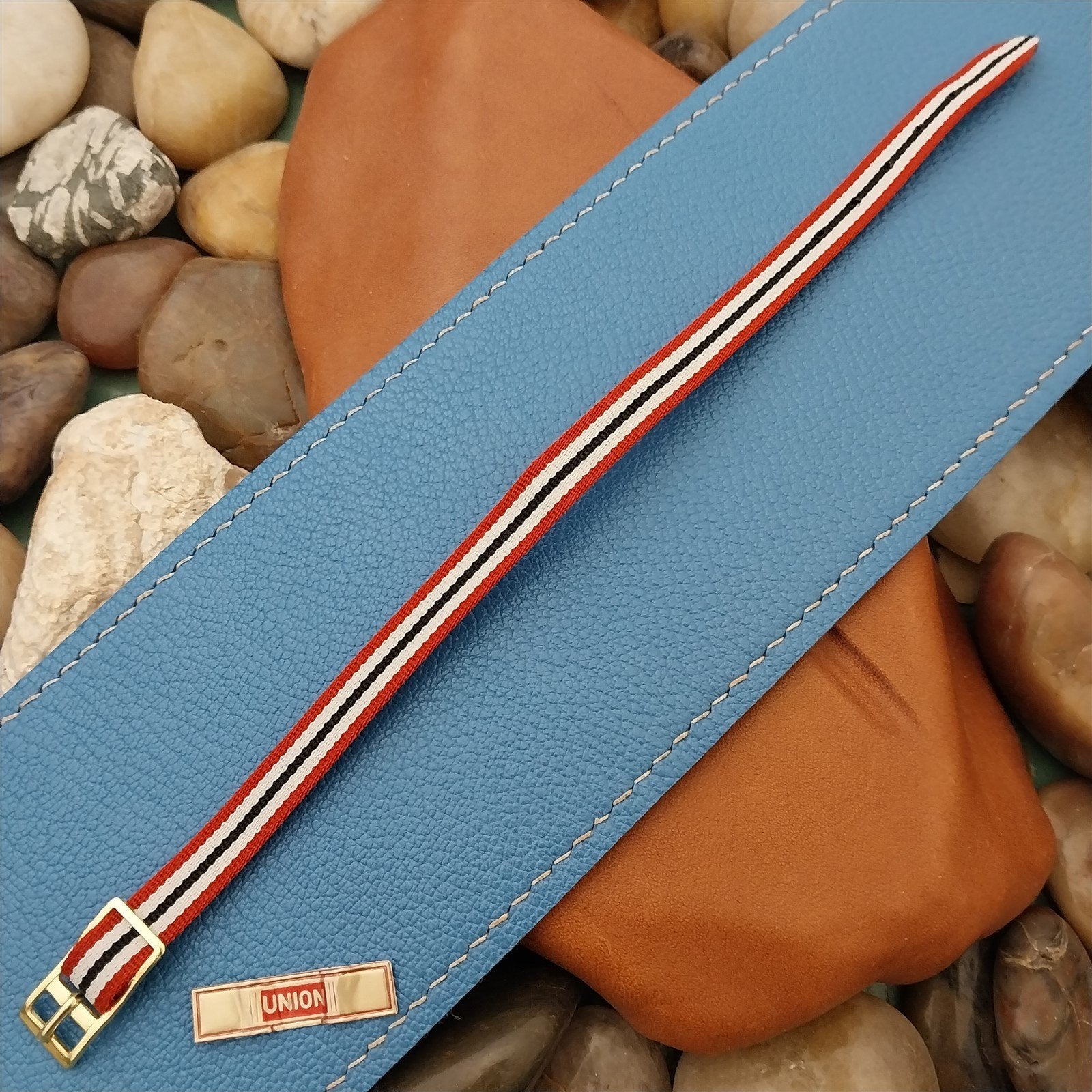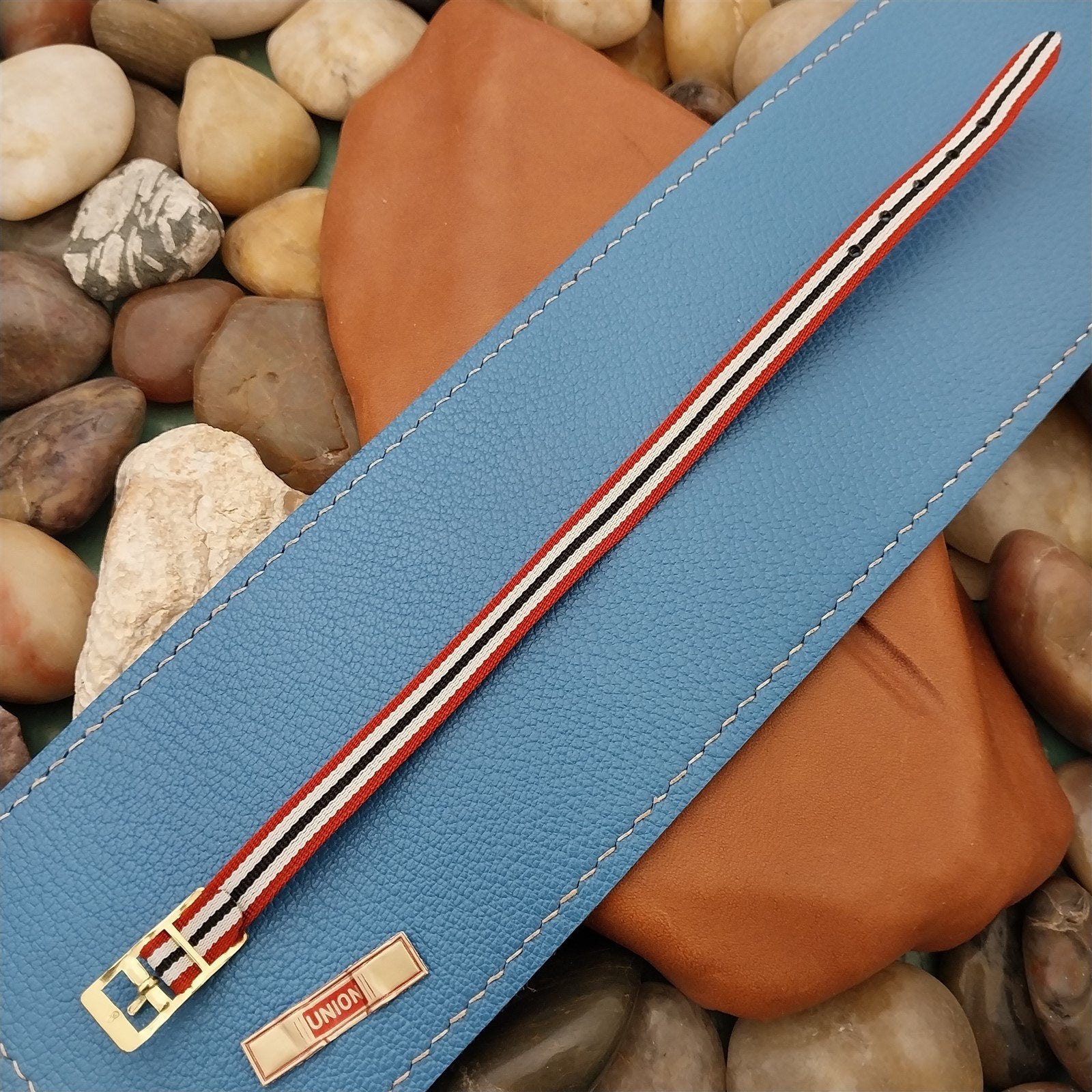 - NOS 1960s-1970s old-stock 1-piece red black & white Perlon field watch band.