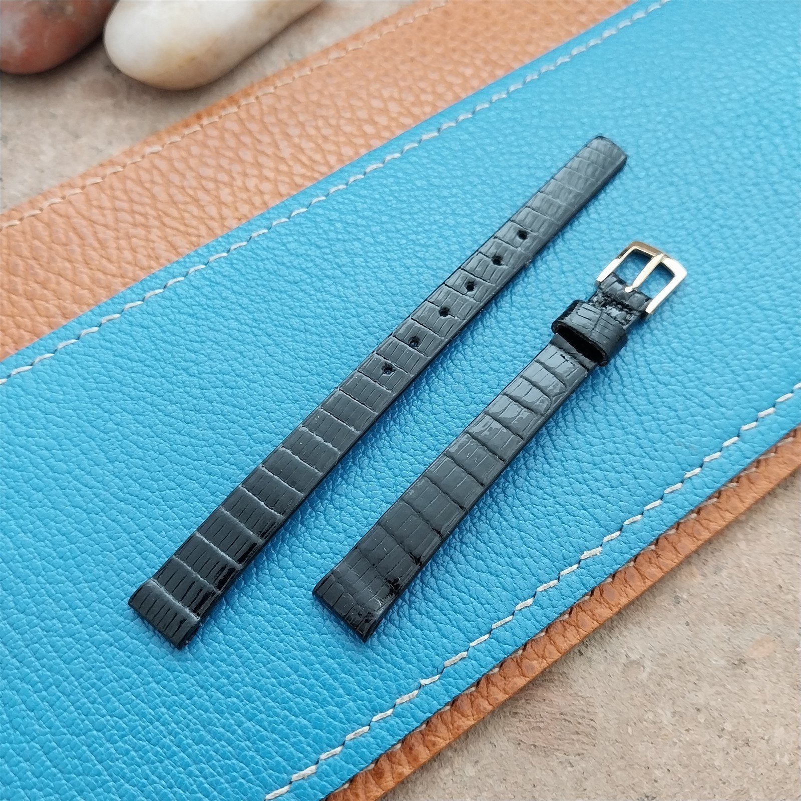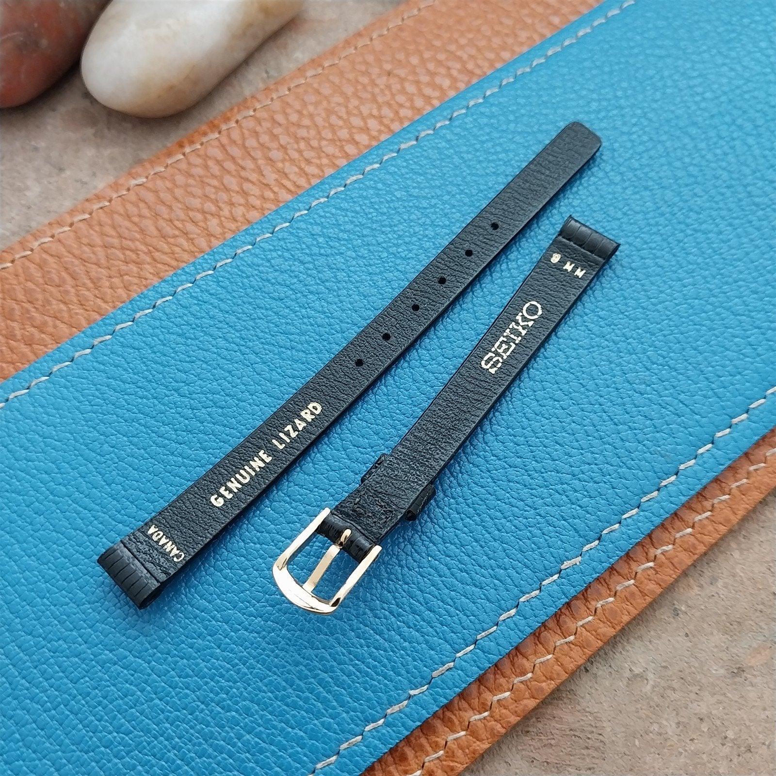 - NOS unused old-stock Seiko black genuine lizard ladies watch strap.