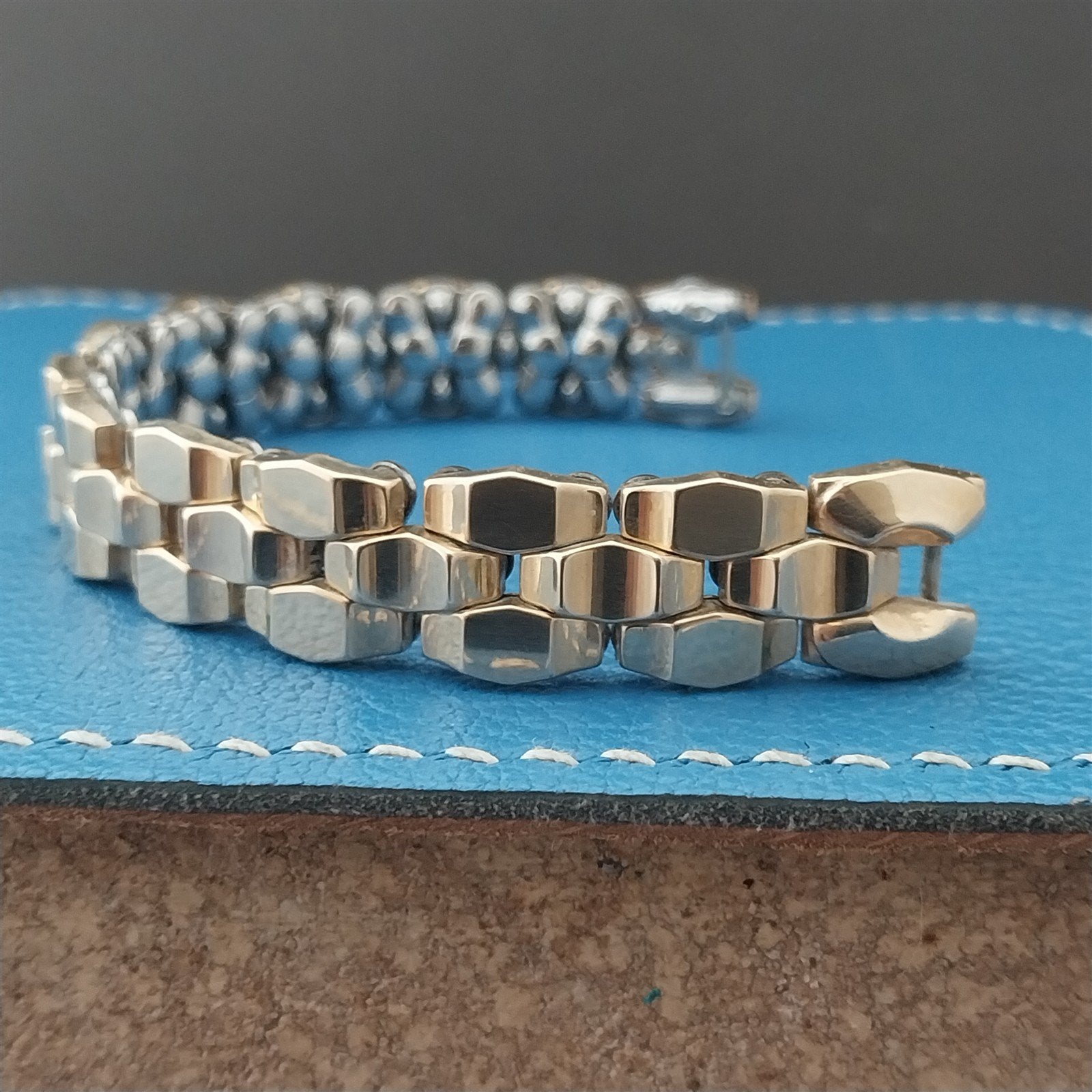 - NOS unused 1950s old-stock Apex 12k yellow gold-filled quadra-flex expansion watch bracelet.
