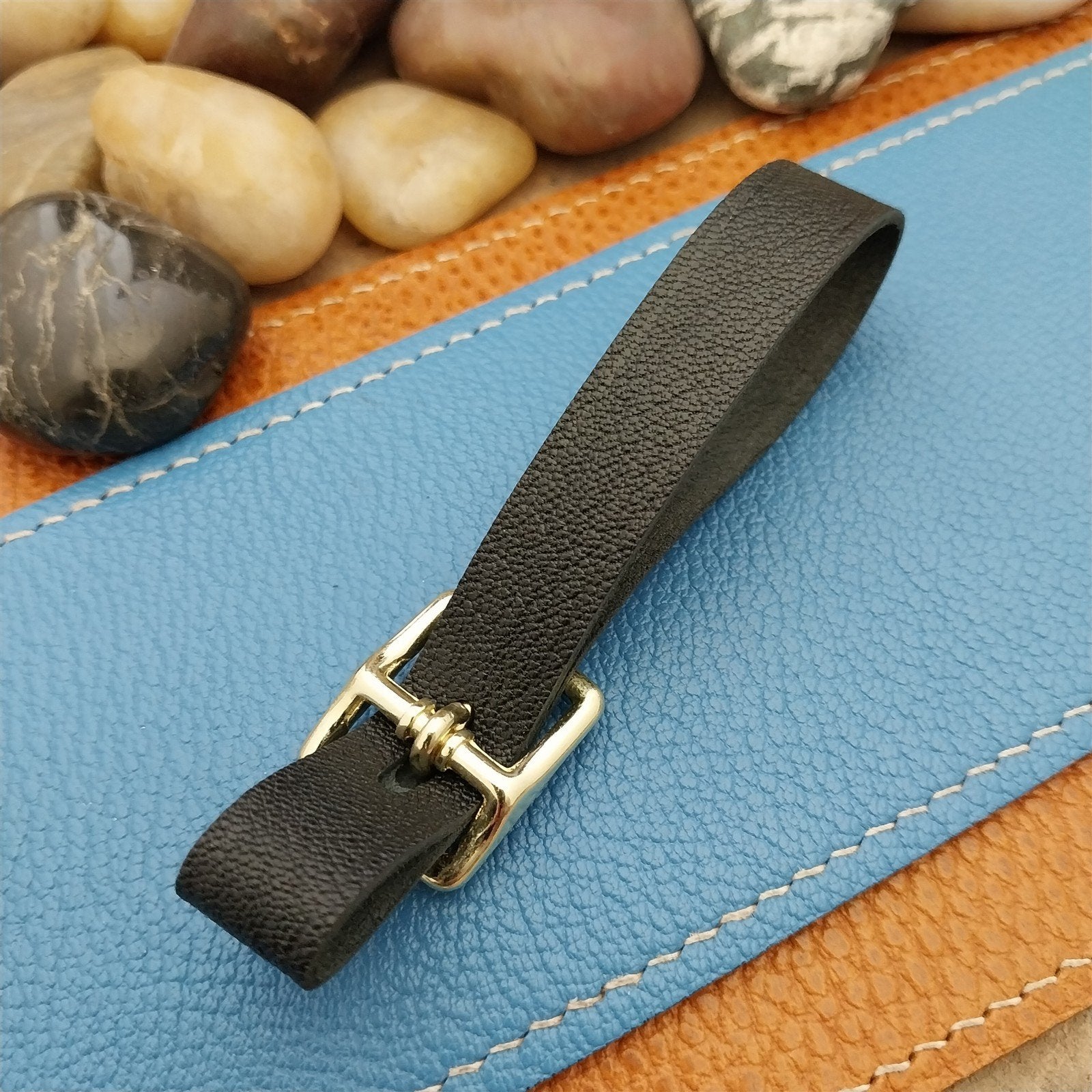 Black French Goatskin Vintage Pocket Watch Fob Strap & Brass Finish Solid Buckle