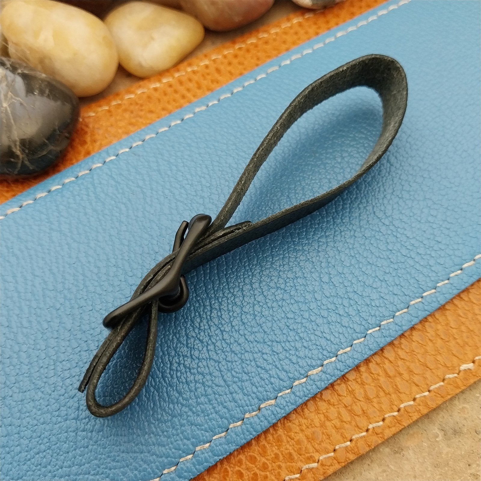 - Black American made grained saddle leather fob strap.