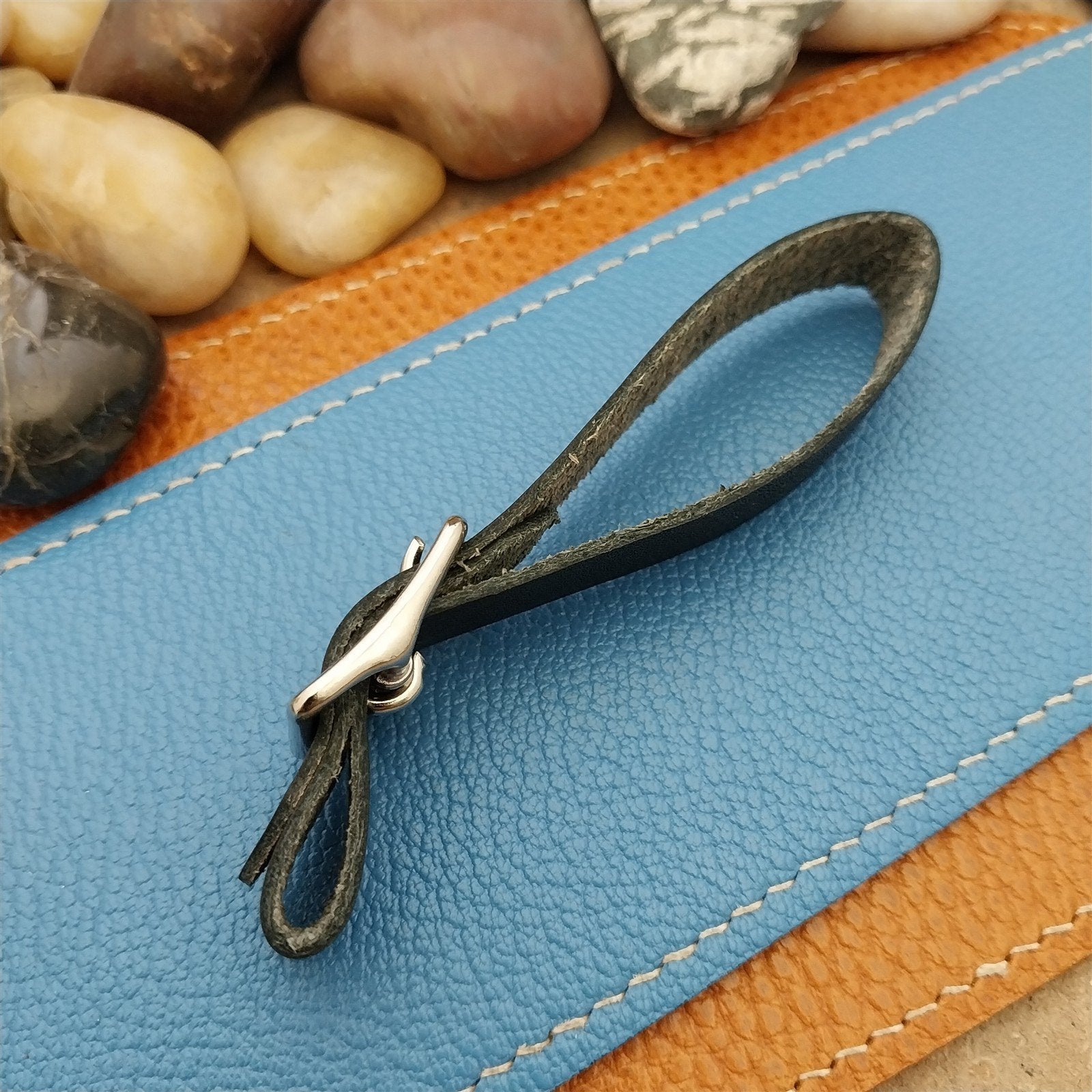- Black American made saddle leather fob strap.
