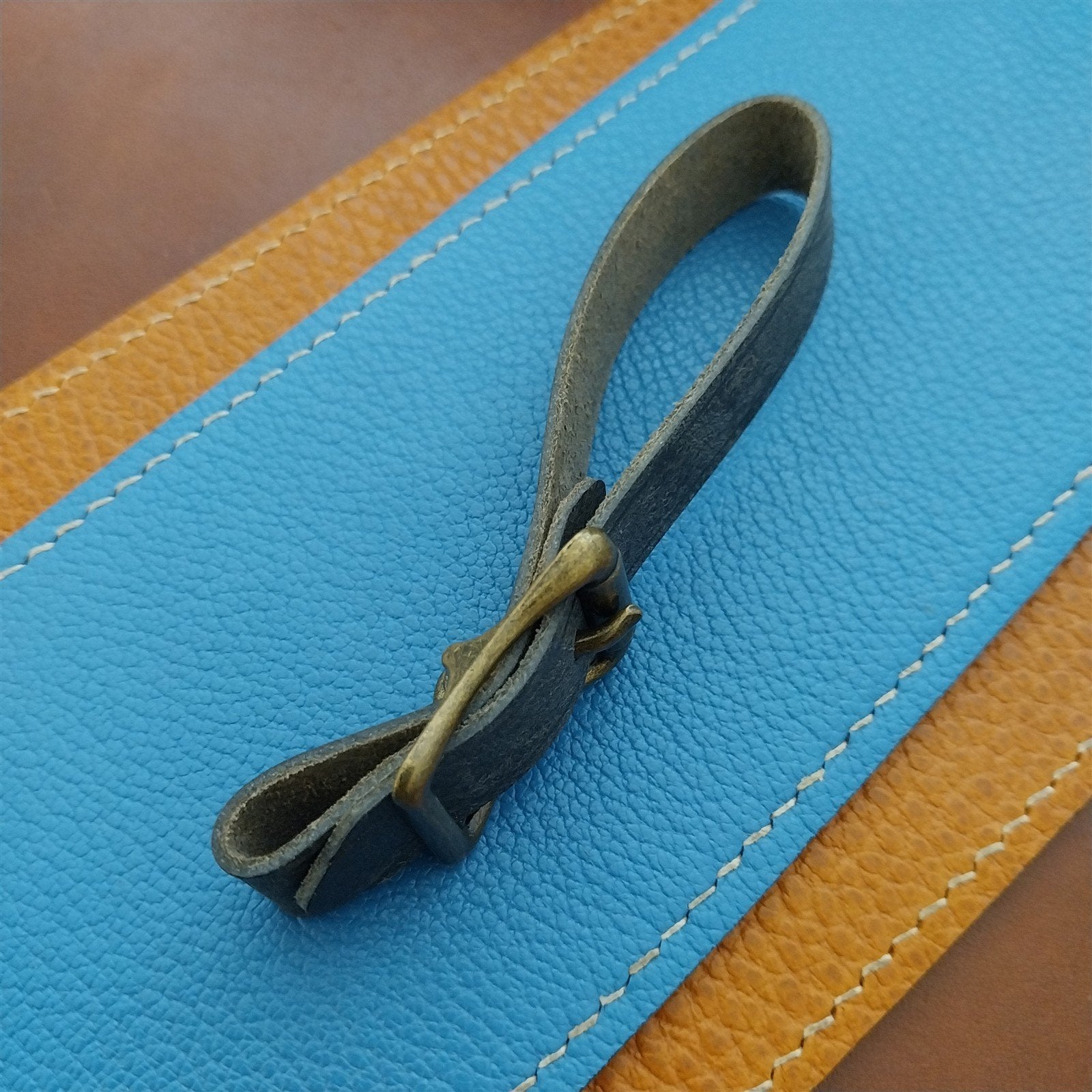 Blue Pueblo Leather Pocket Watch Fob Strap & Antique Brass Finish Buckle