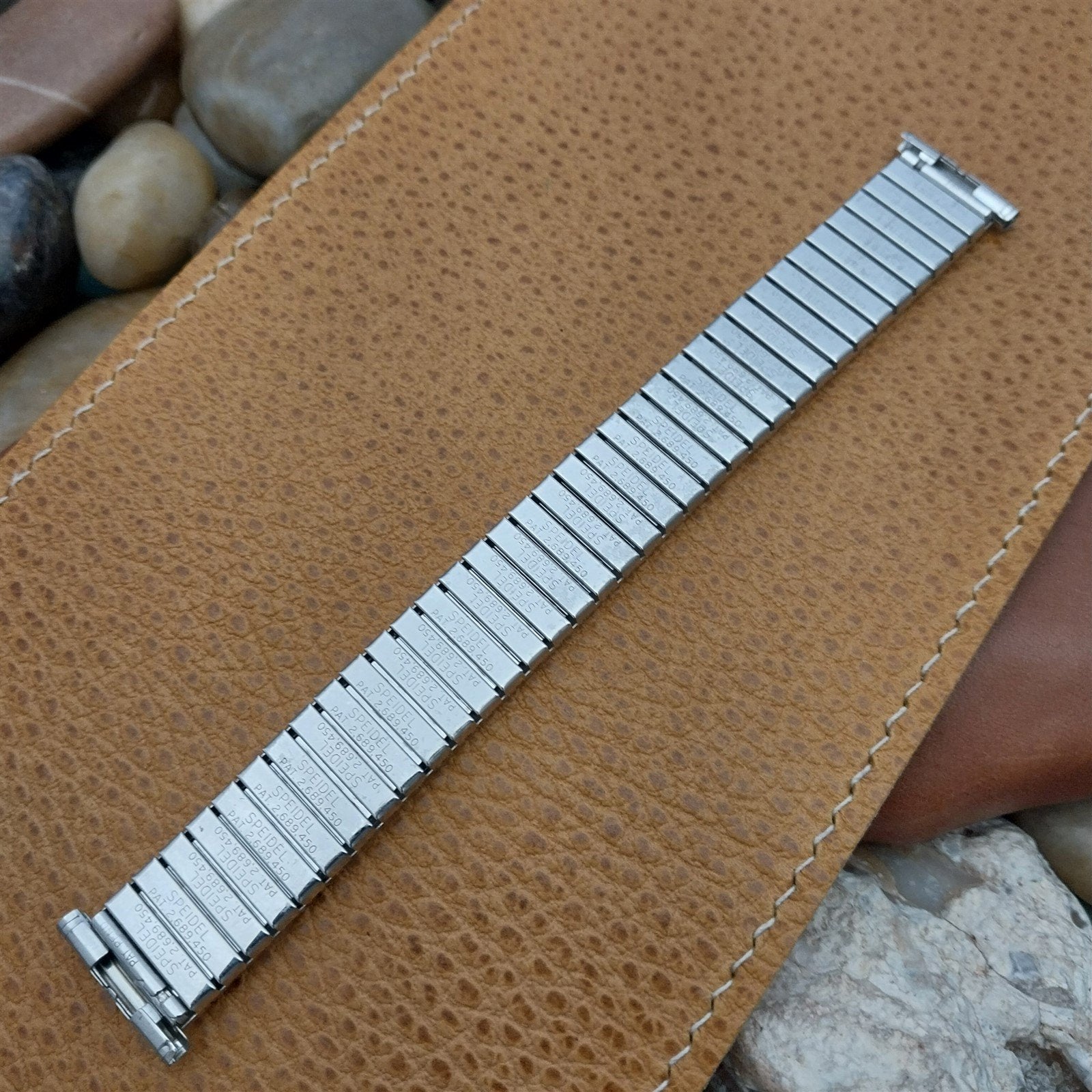 - NOS unused old-stock 1960 Speidel 1/20 10k white gold-filled expansion watch bracelet.