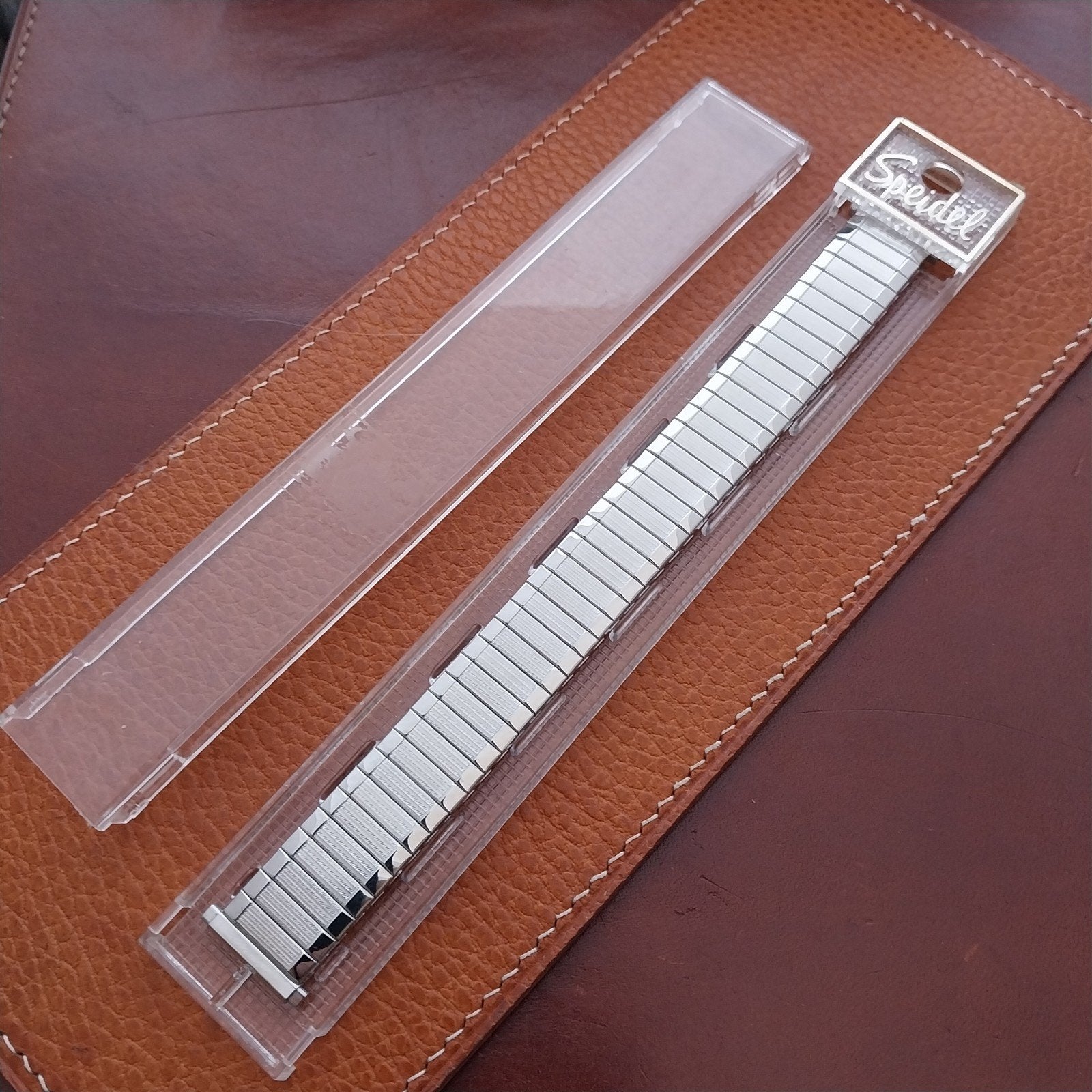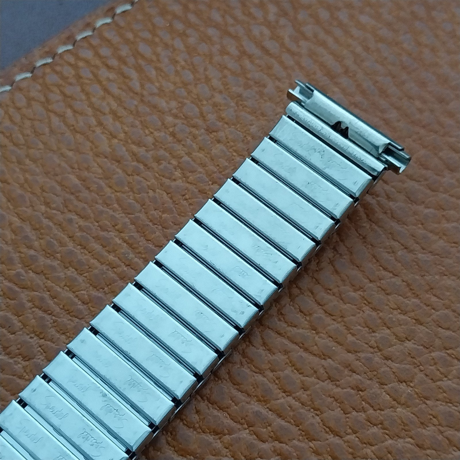 - NOS unused 1970s old-stock Speidel Aquarius stainless steel expansion watch bracelet.