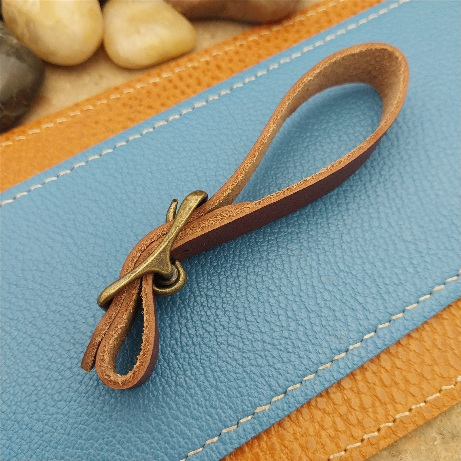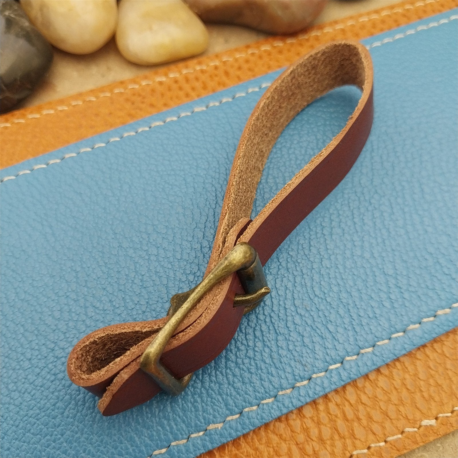 - Brown American made Hermann Oak brown English Bridle leather watch fob strap.