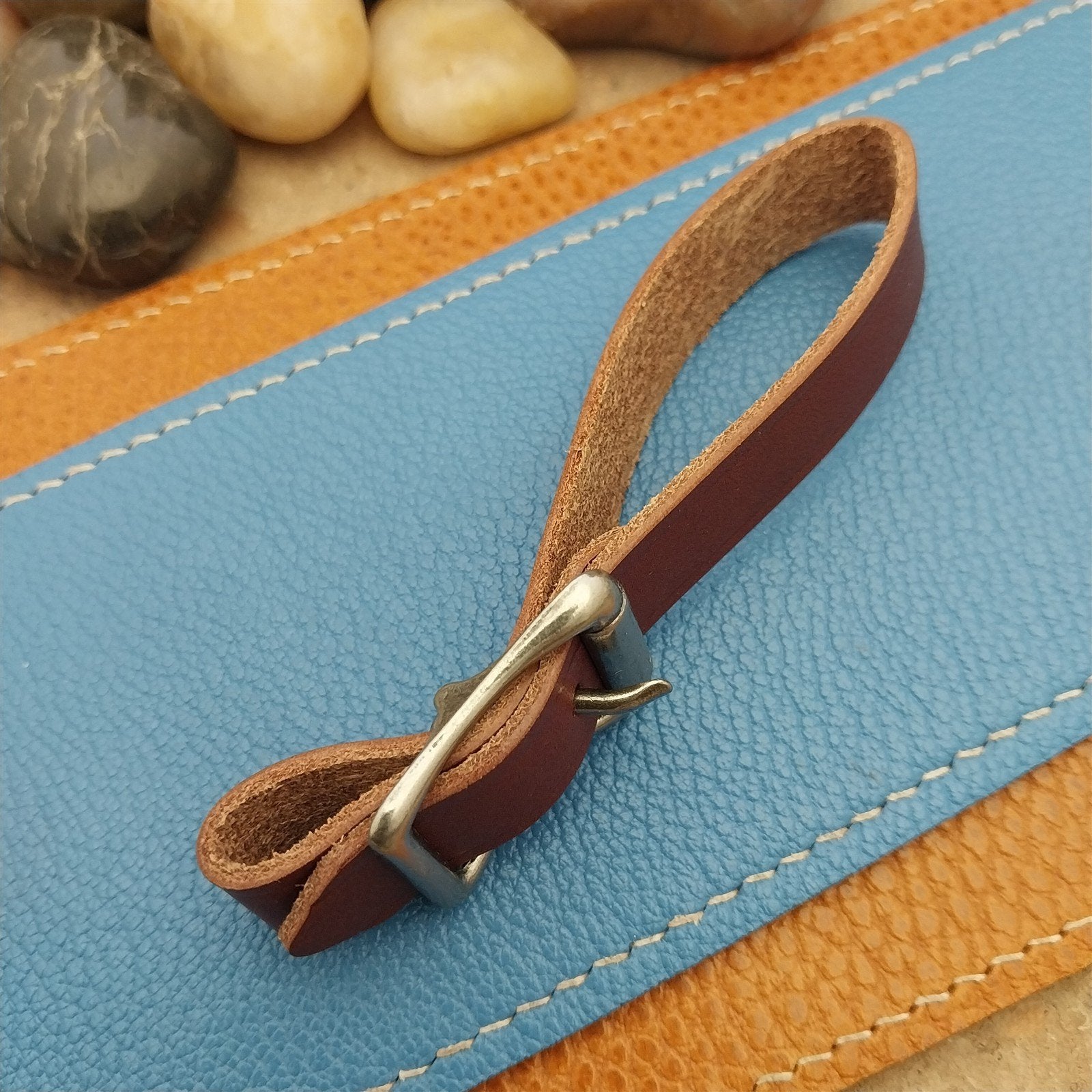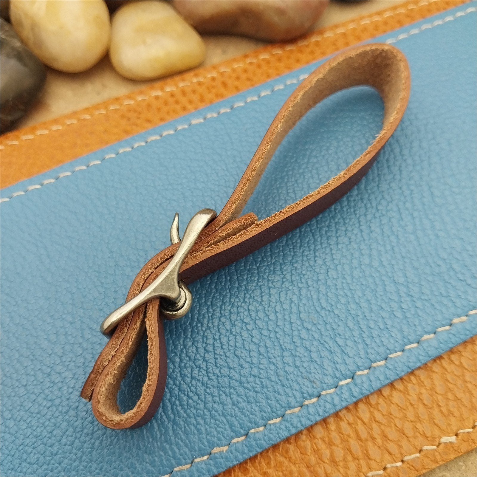 - Brown American made Hermann Oak brown English Bridle leather watch fob strap.