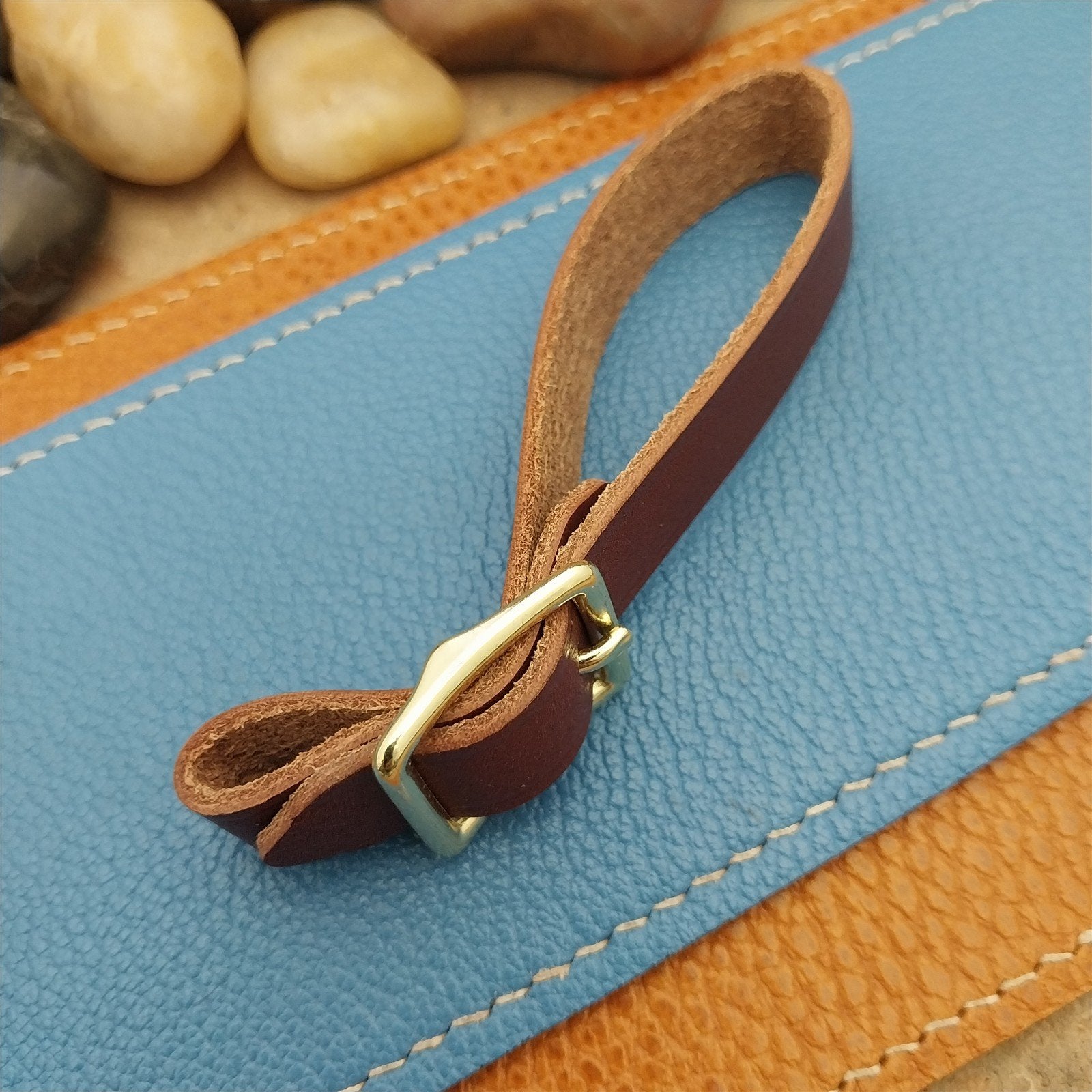 - Brown American made Hermann Oak brown English Bridle leather watch fob strap.
