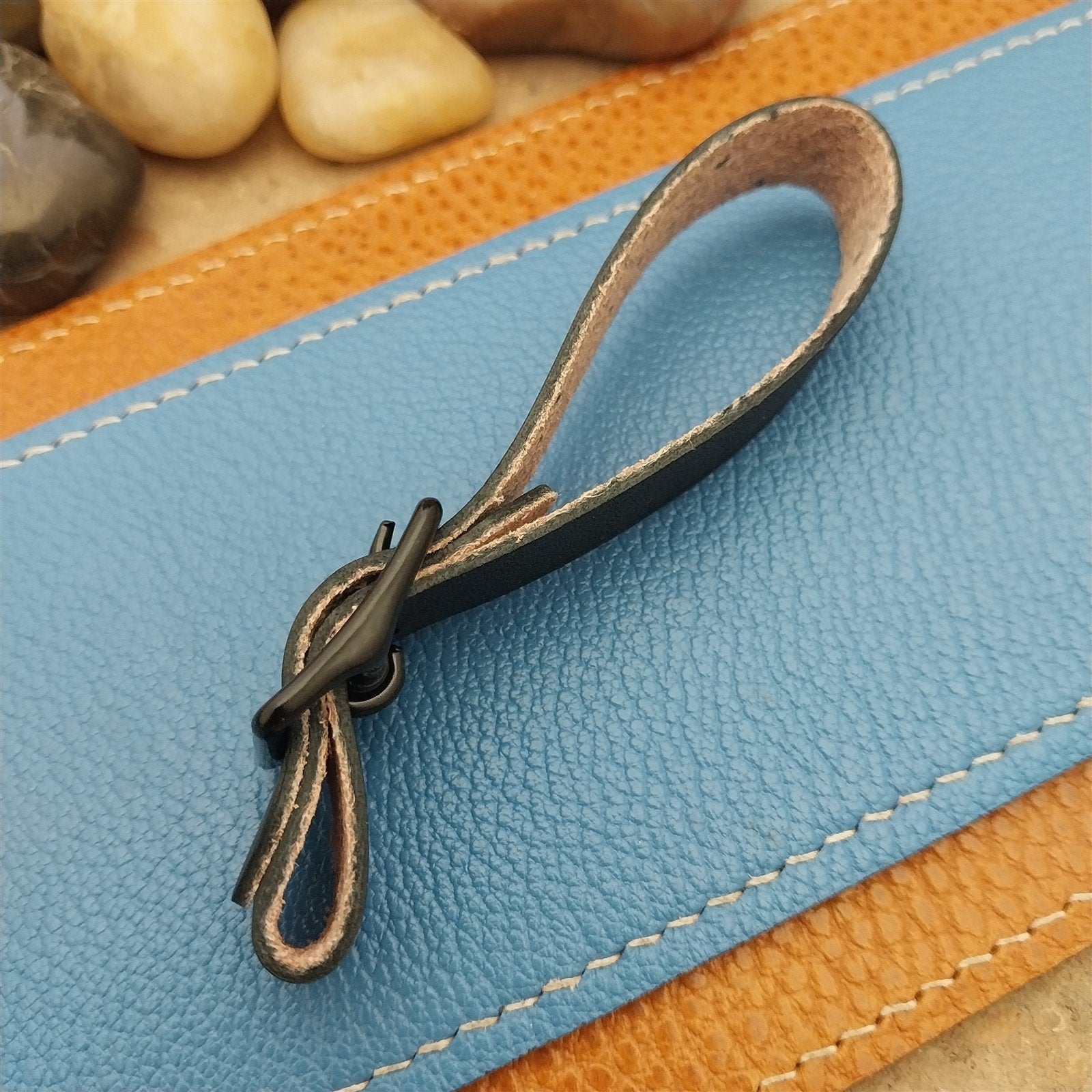 English Bridle Leather Vintage Pocket Watch Fob Strap & Cast Black Buckle