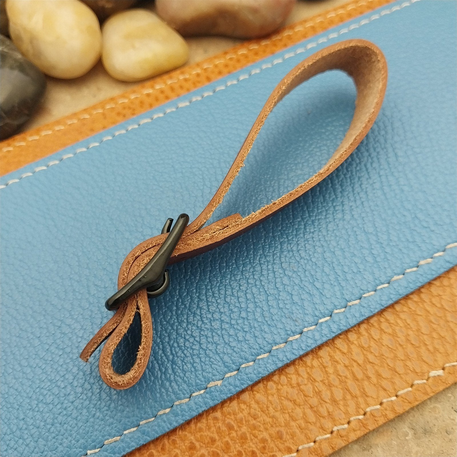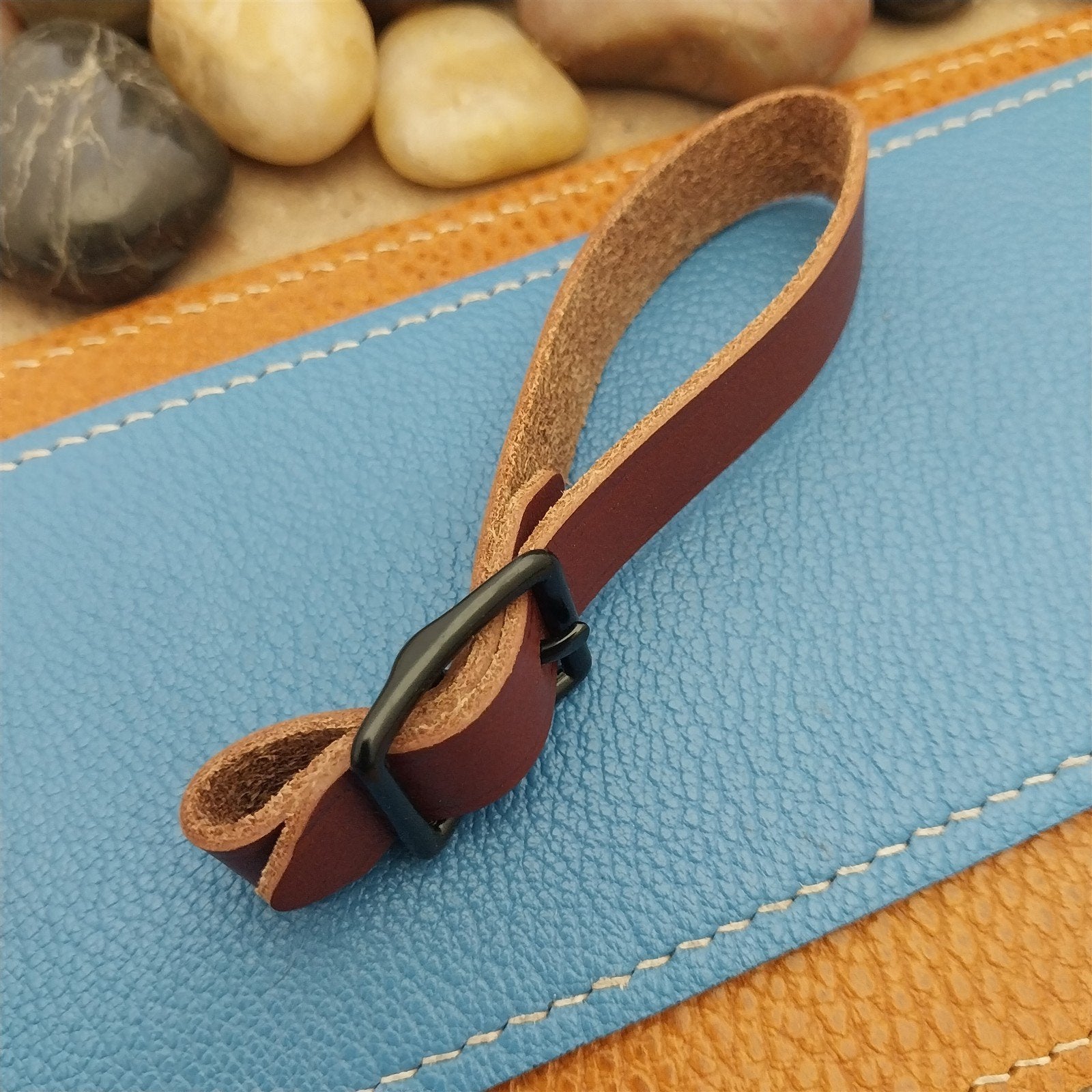 - Brown American made Hermann Oak brown English Bridle leather watch fob strap.