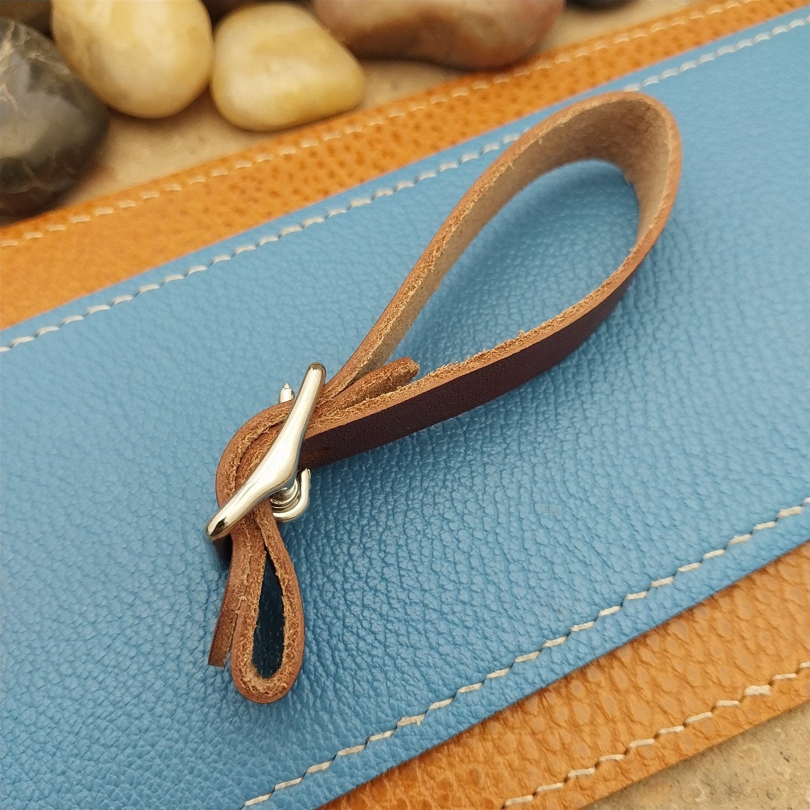 - Brown American made Hermann Oak brown English Bridle leather watch fob strap.