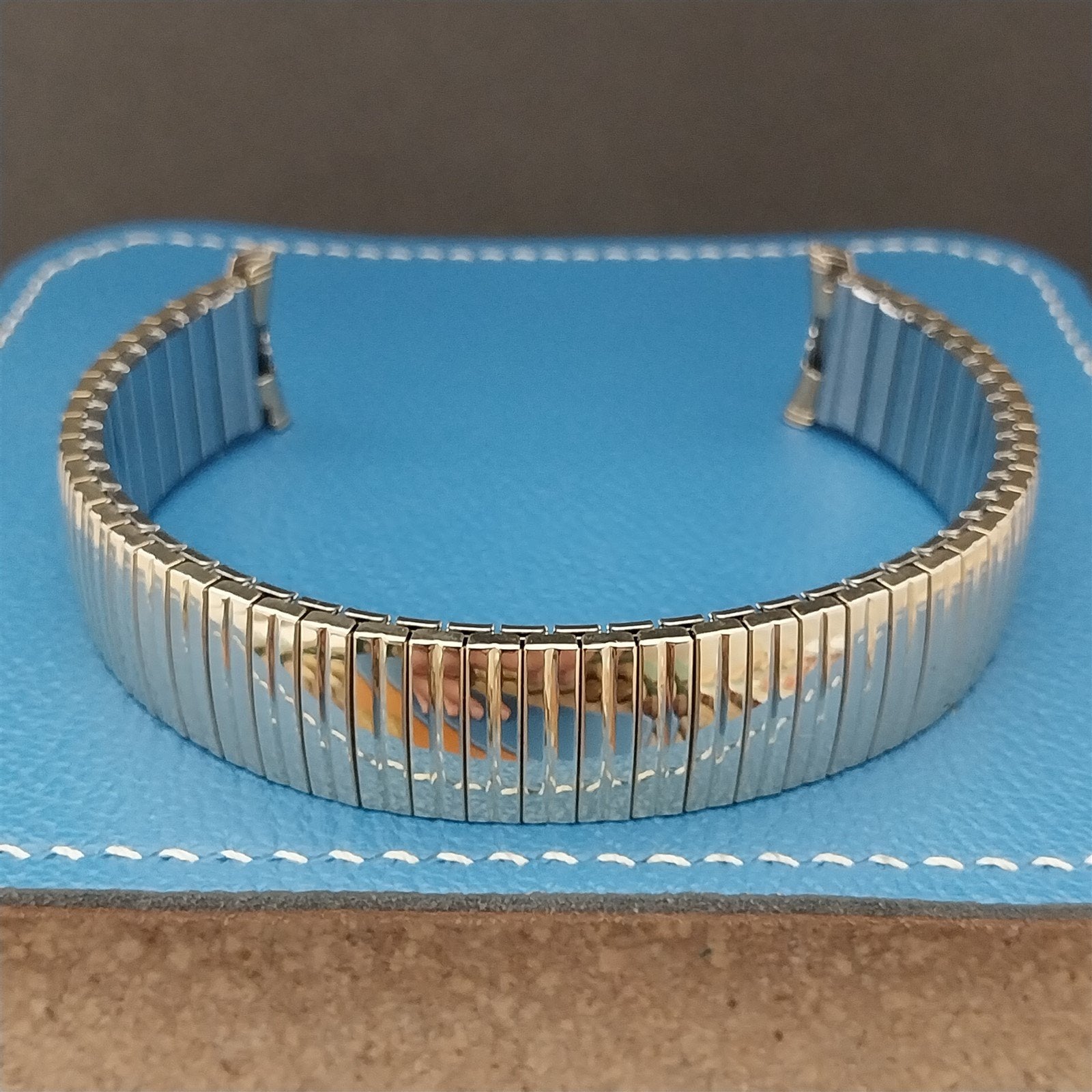 - NOS unused 1968 old-stock Speidel Linesman 10k yellow gold-filled expansion watch bracelet.