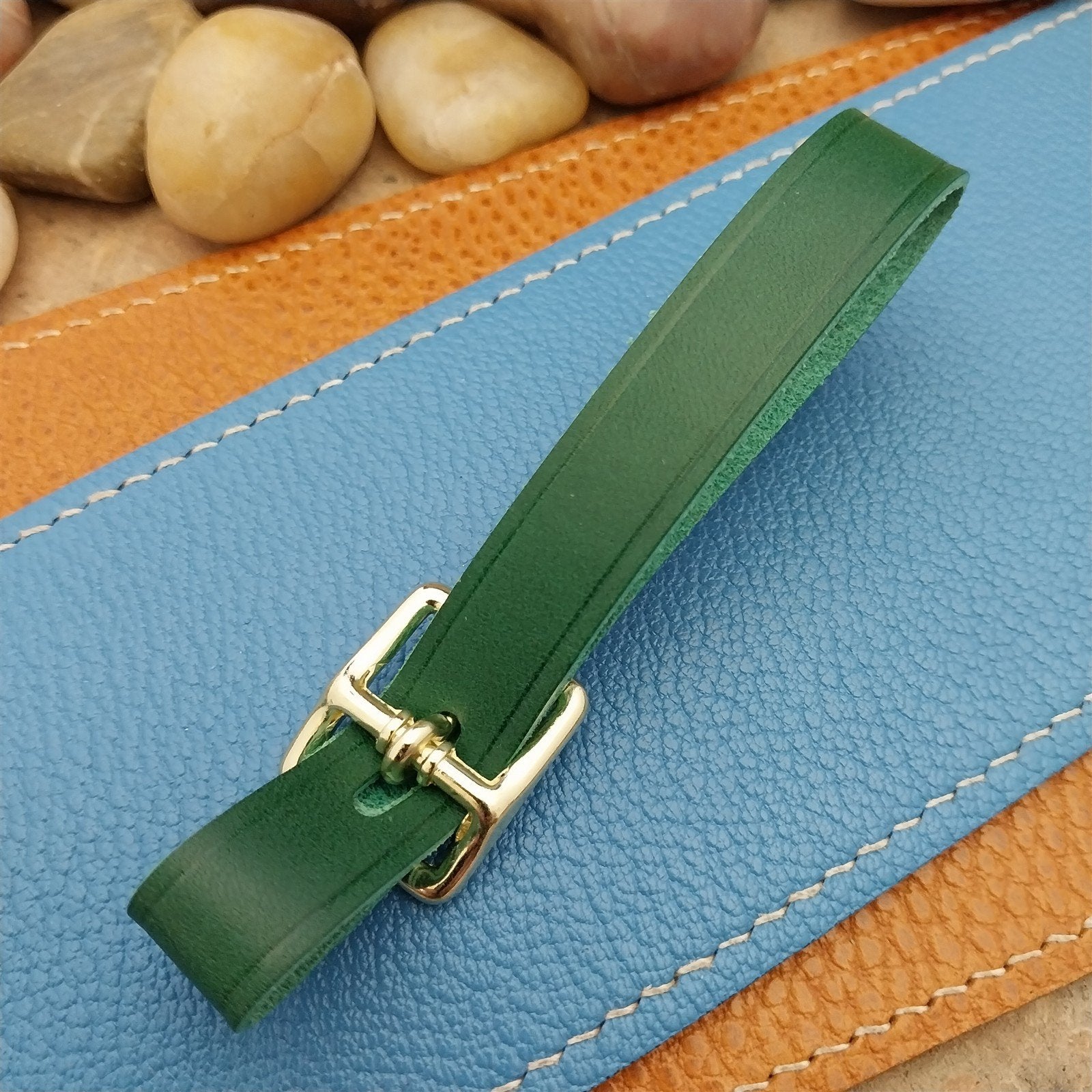 Green Italian Leather Pocket Watch Fob Strap & Polished Brass Finish Solid Buckle