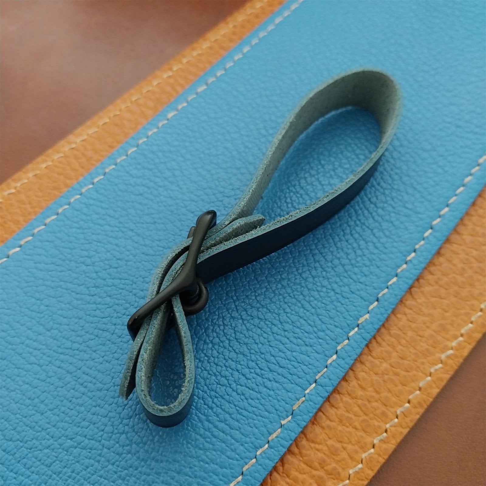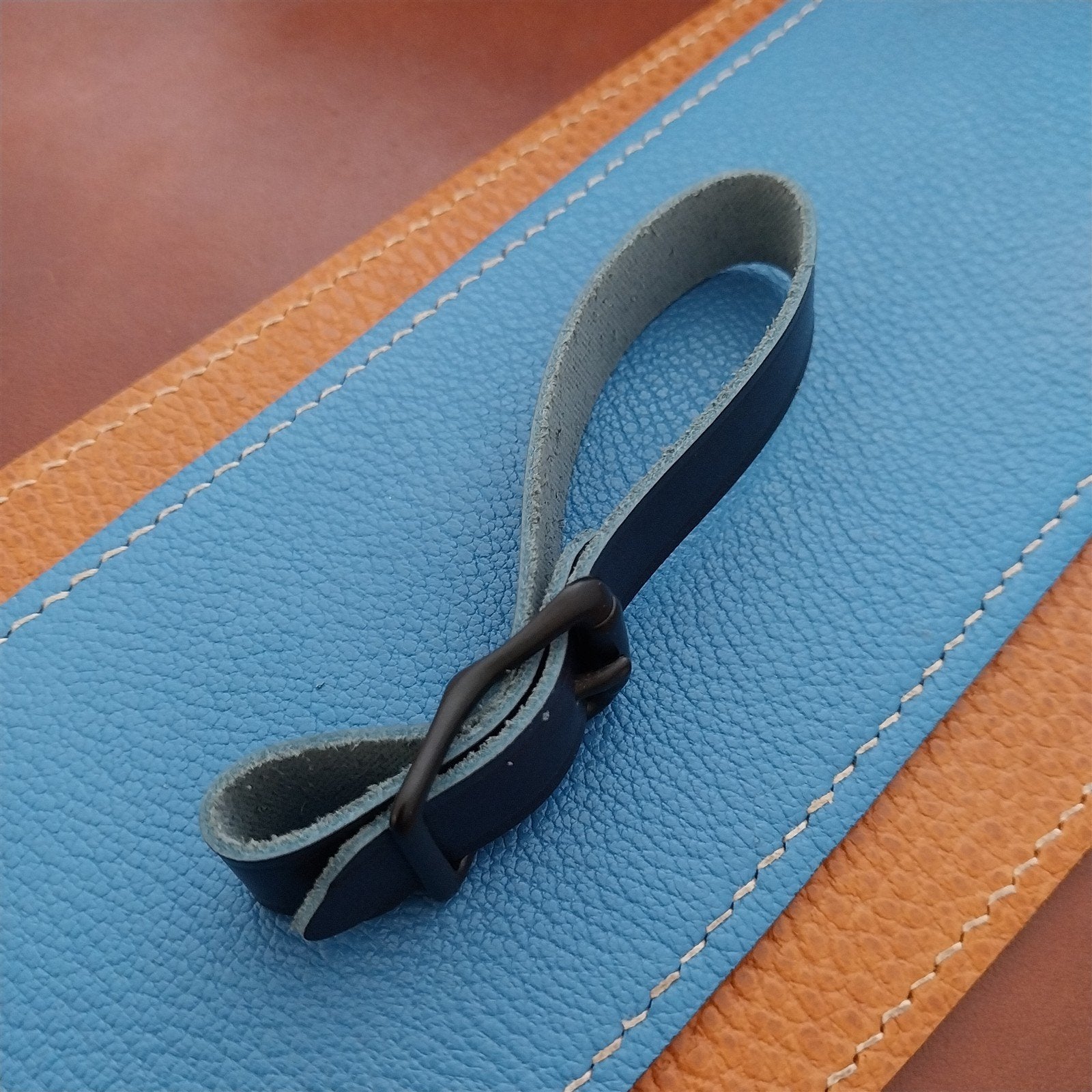 - Ilcea Museum Calf Navy Blue leather fob strap.