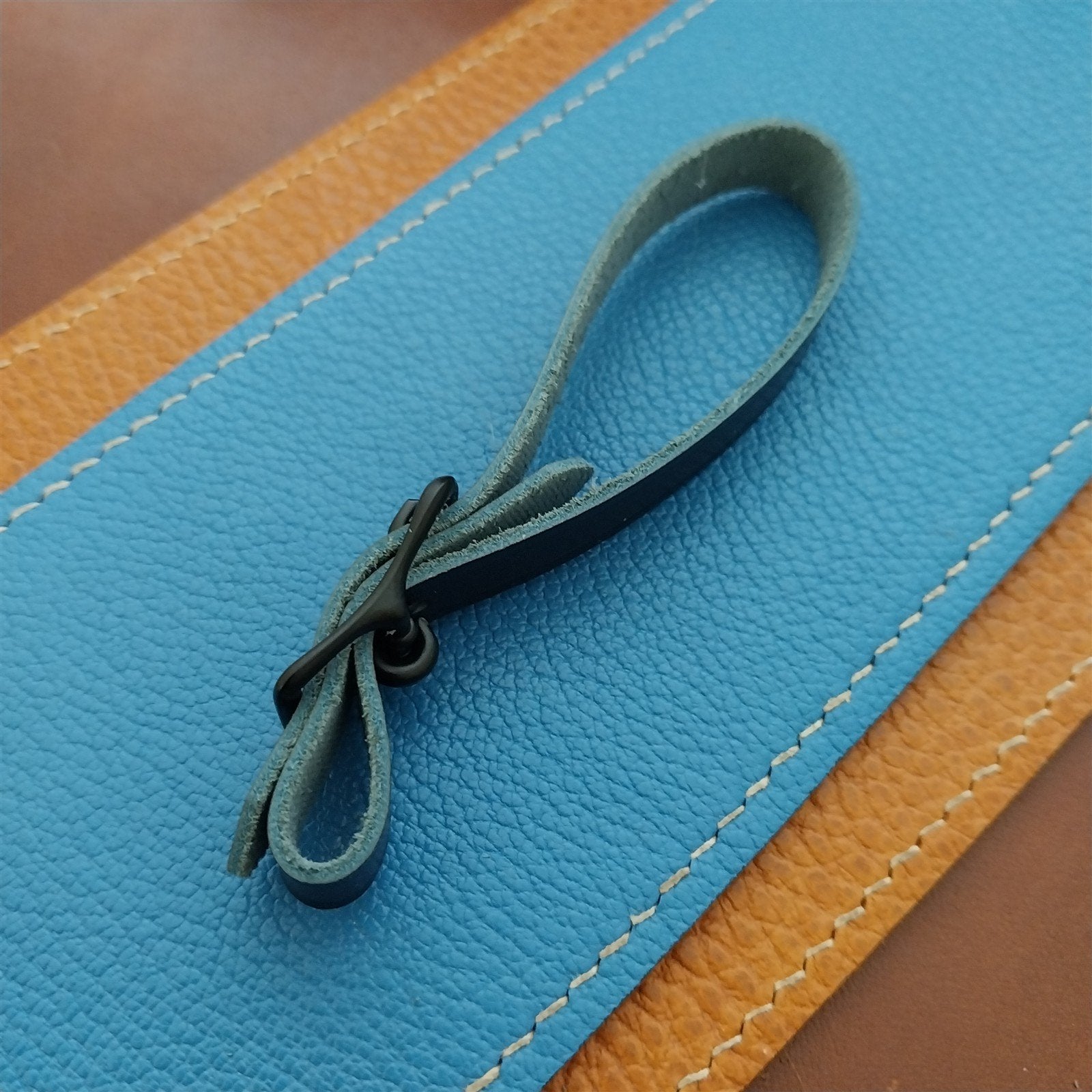 - Ilcea Museum Calf Navy Blue leather fob strap.