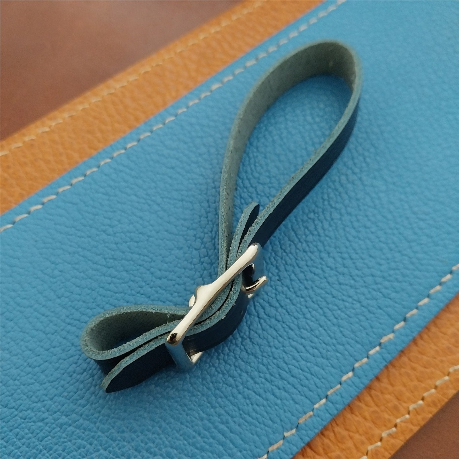 - Ilcea Museum Calf Navy Blue leather fob strap.