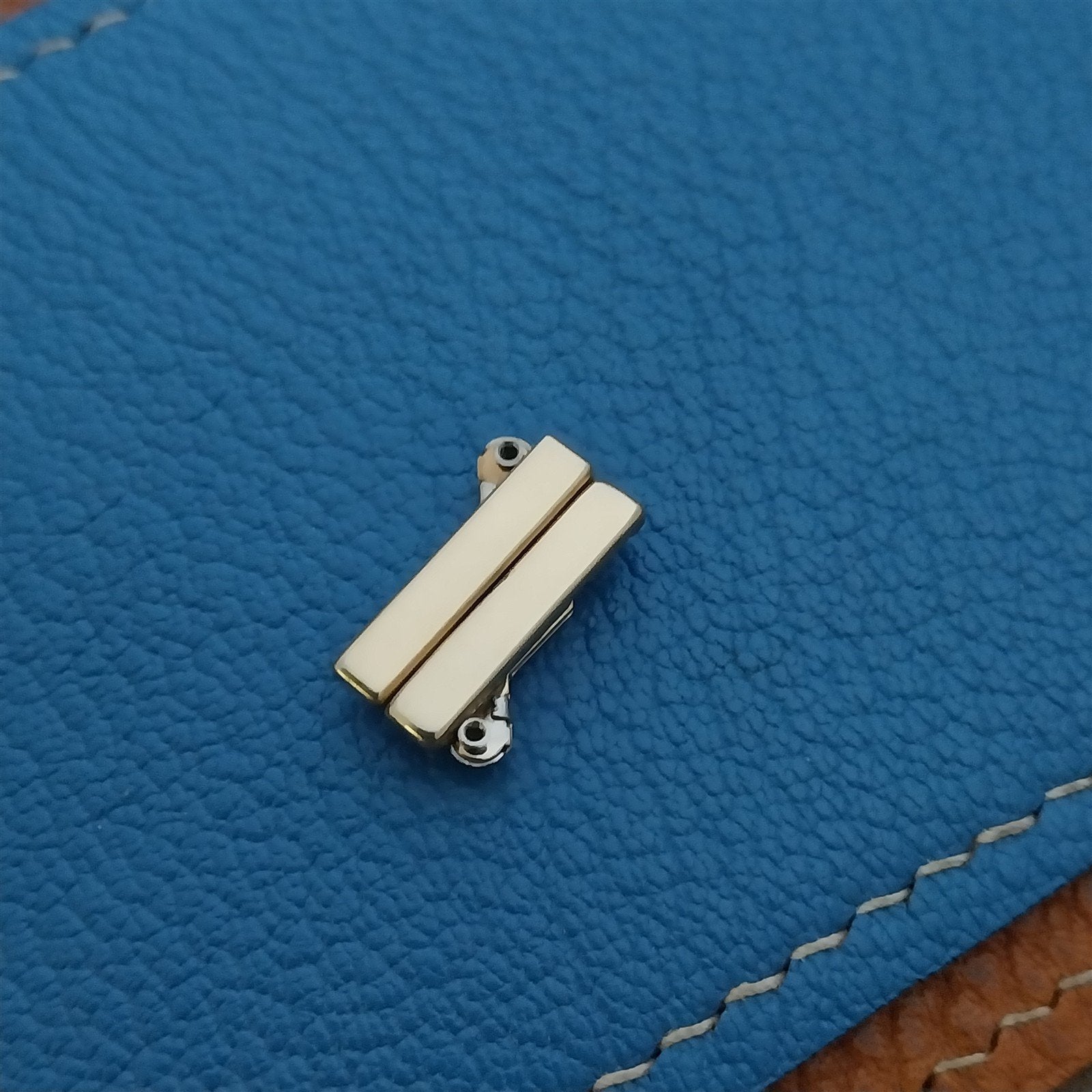 - NOS unused old-stock JB Champion flat-top yellow gold-filled scissor-expansion link.