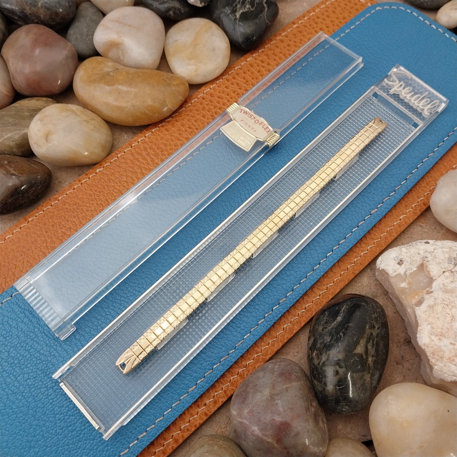 - NOS unused 1960s old-stock Speidel Fiesta 10k yellow gold-filled expansion cocktail watch bracelet.