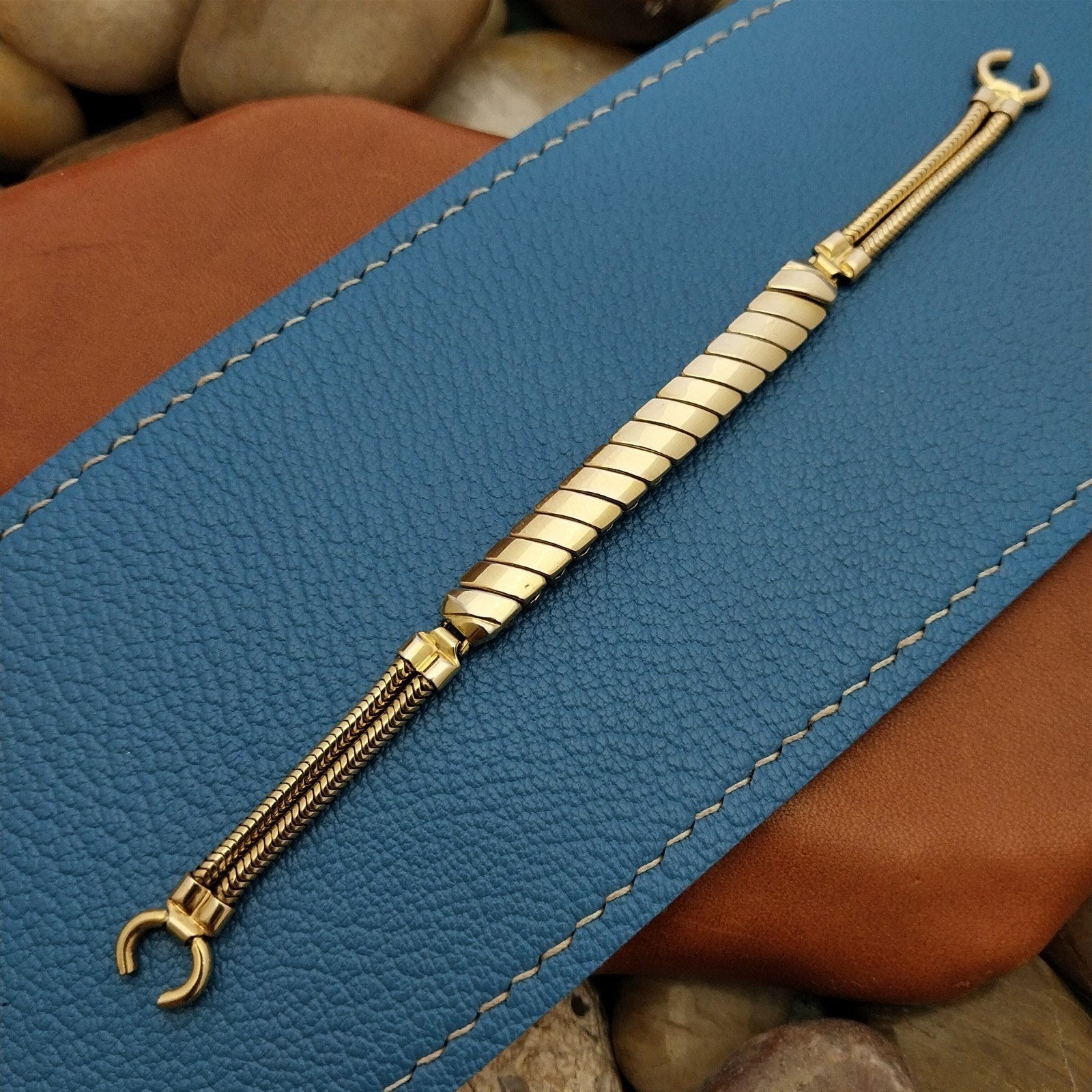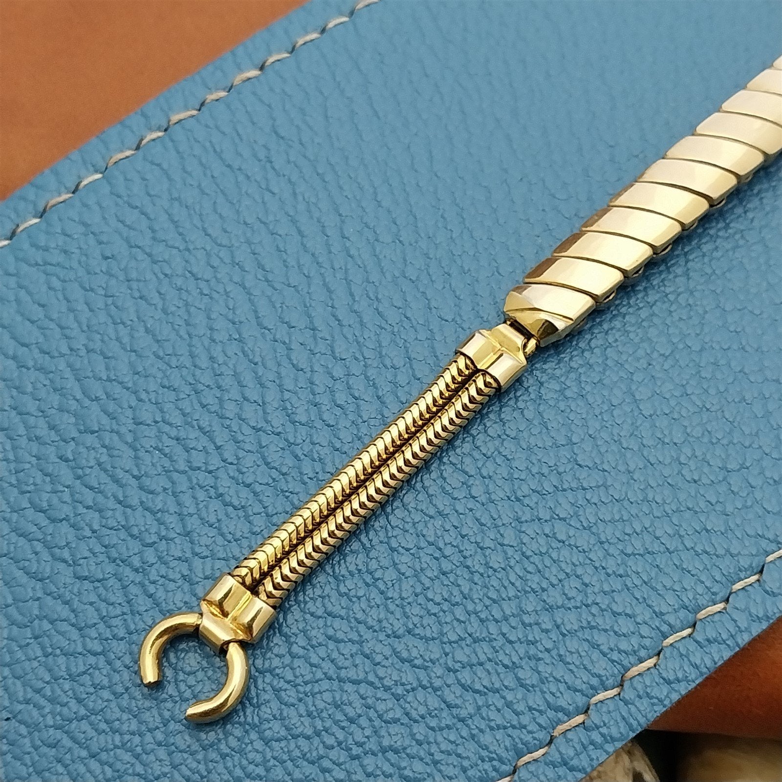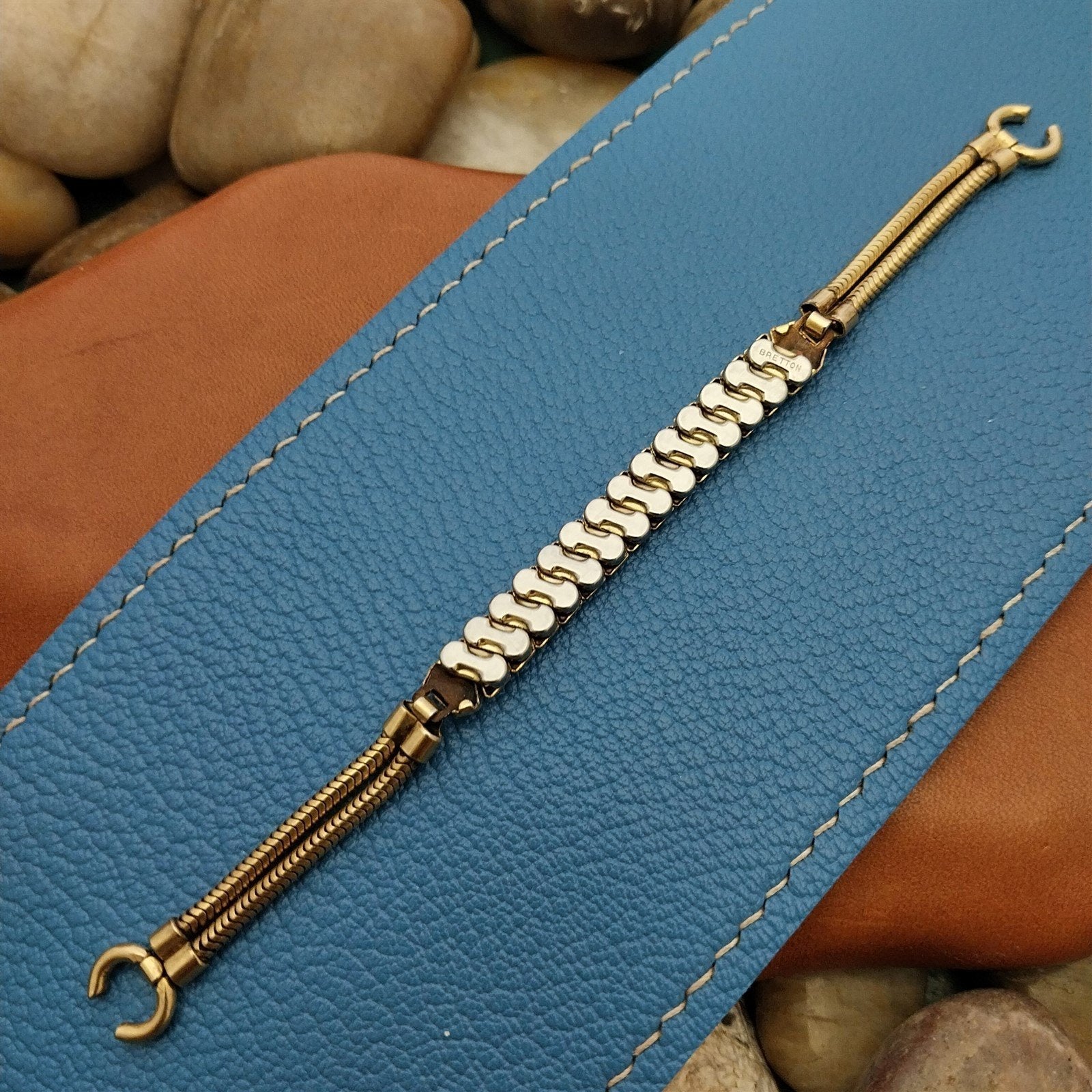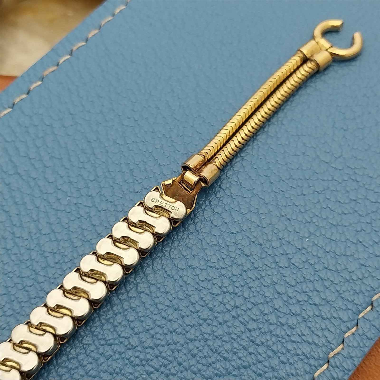 - NOS unused 1940s-1950s old-stock Bretton yellow gold-filled expansion cocktail watch bracelet.