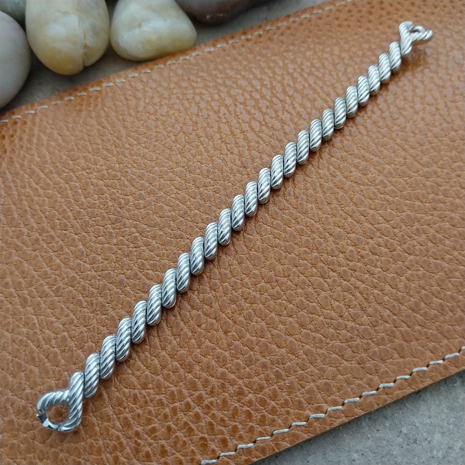 - NOS unused 1950s old-stock Speidel Golden Chord 10k white gold-filled expansion cocktail watch bracelet.