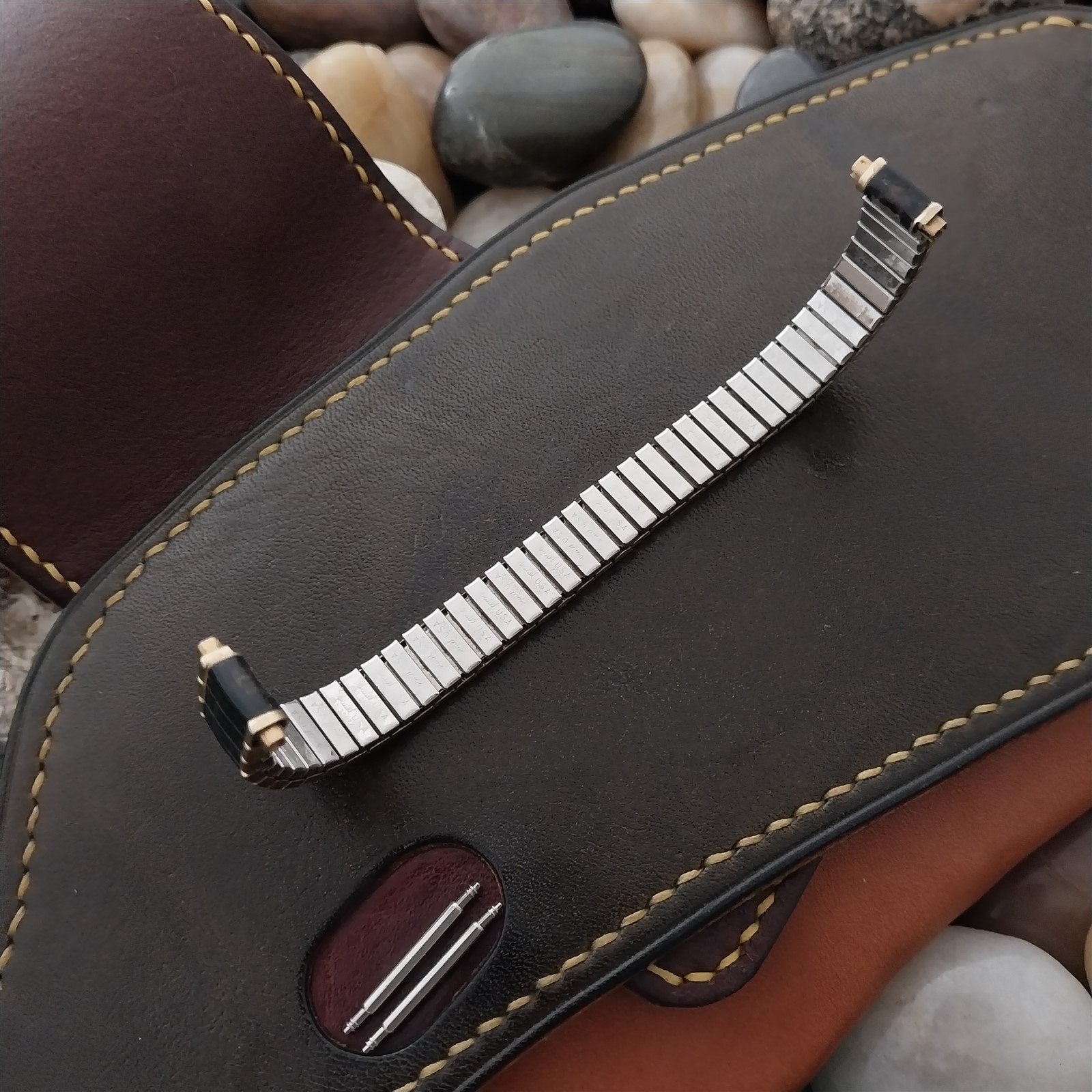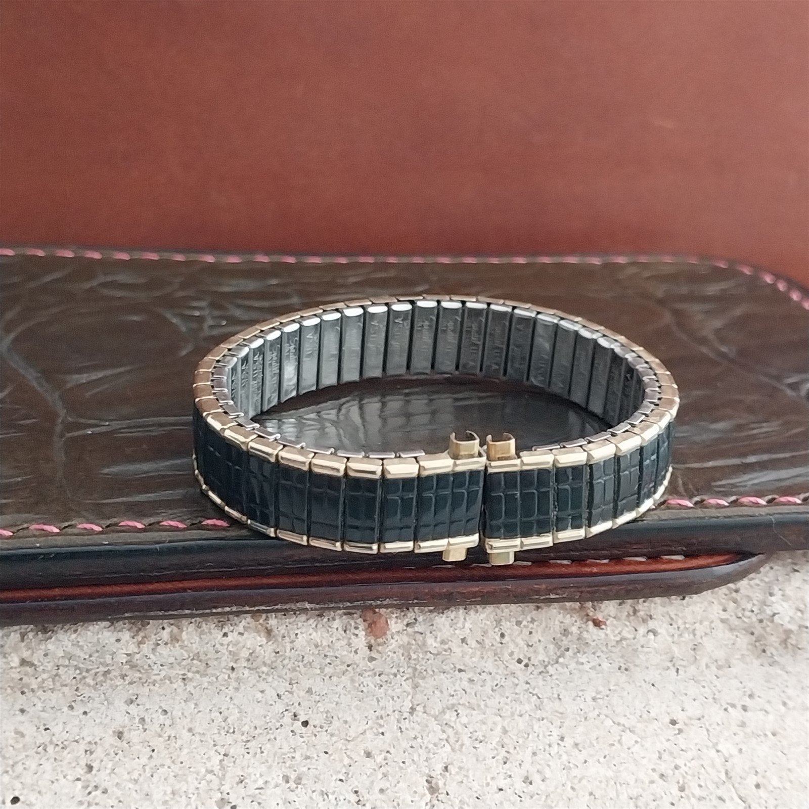 - NOS unused 1970s old-stock Speidel Romunda 10k yellow rolled gold-plate expansion cocktail watch bracelet.