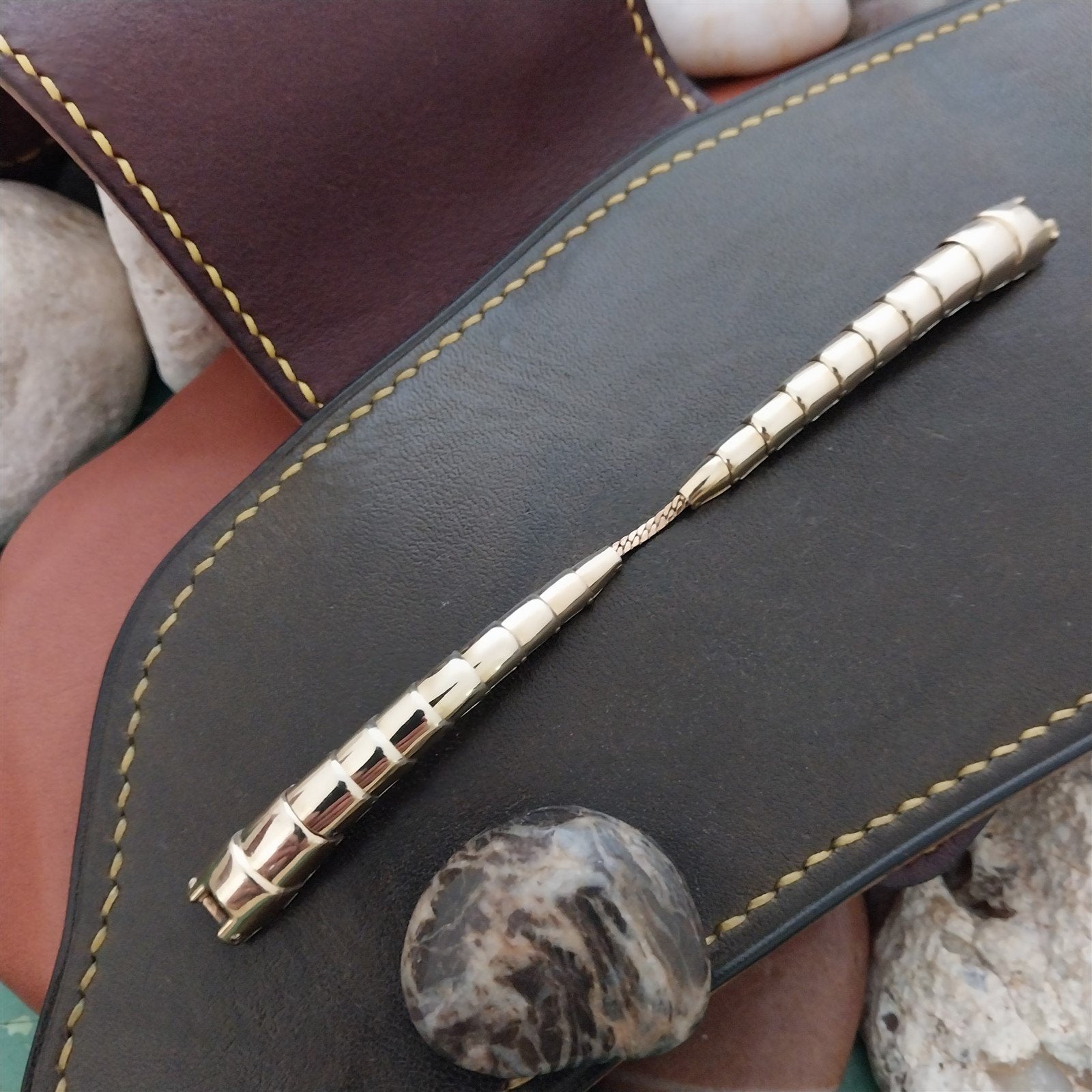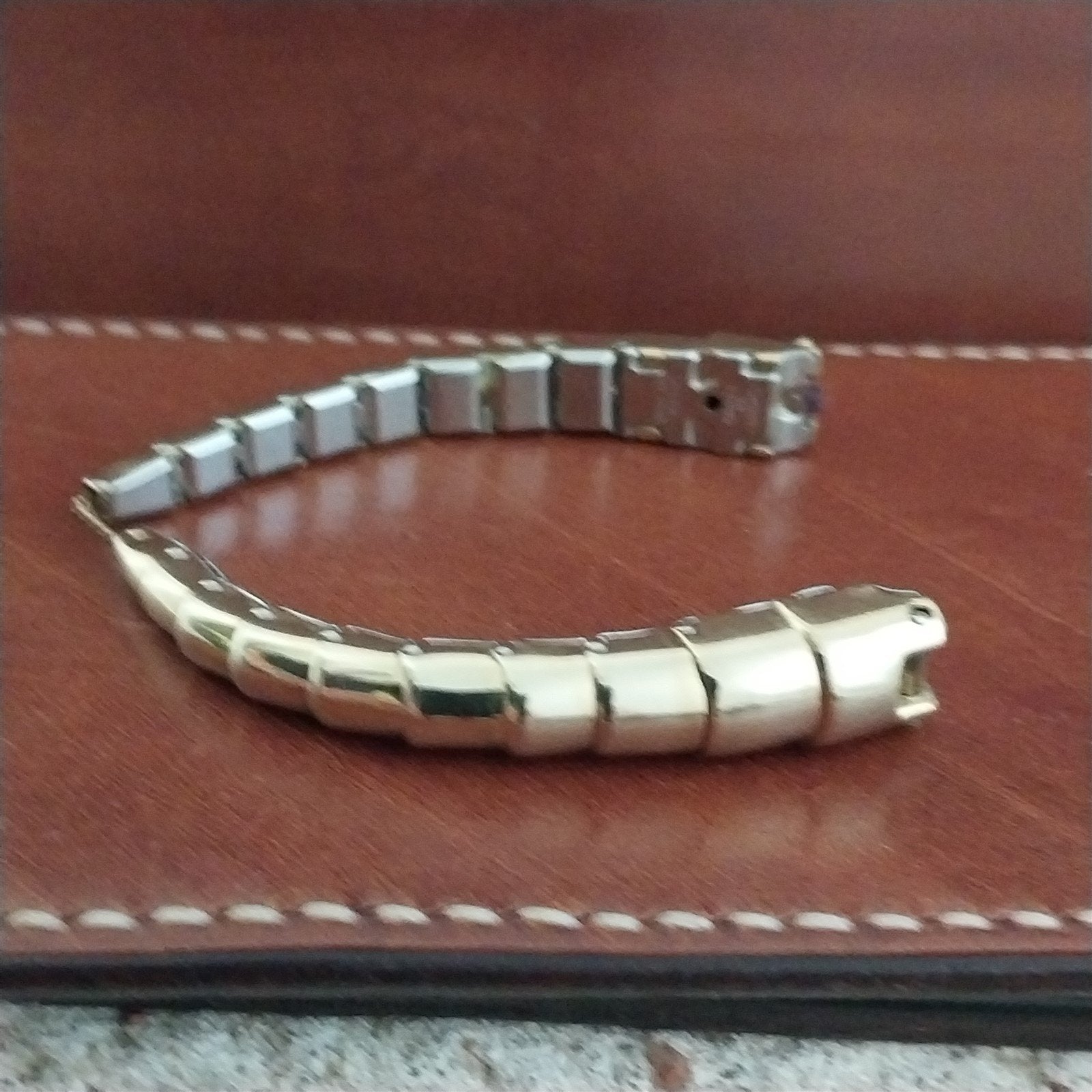 - NOS unused 1950s old-stock Speidel 10k yellow gold-filled Spirit of Paris Mid Century Modern watch bracelet.