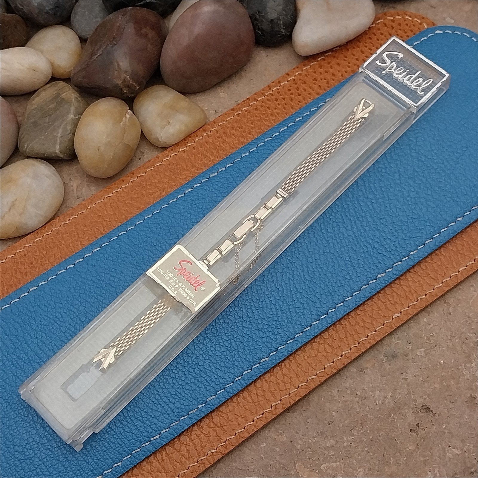 - NOS unused 1960s old-stock Speidel Mesh 1/40 10k yellow rolled gold plate 2-piece mesh watch bracelet.
