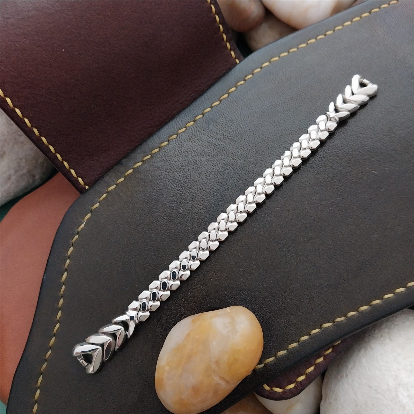 - NOS unused 1961 old-stock ladies Speidel Golden Harvest 10k white gold-filled expansion ladies watch bracelet.