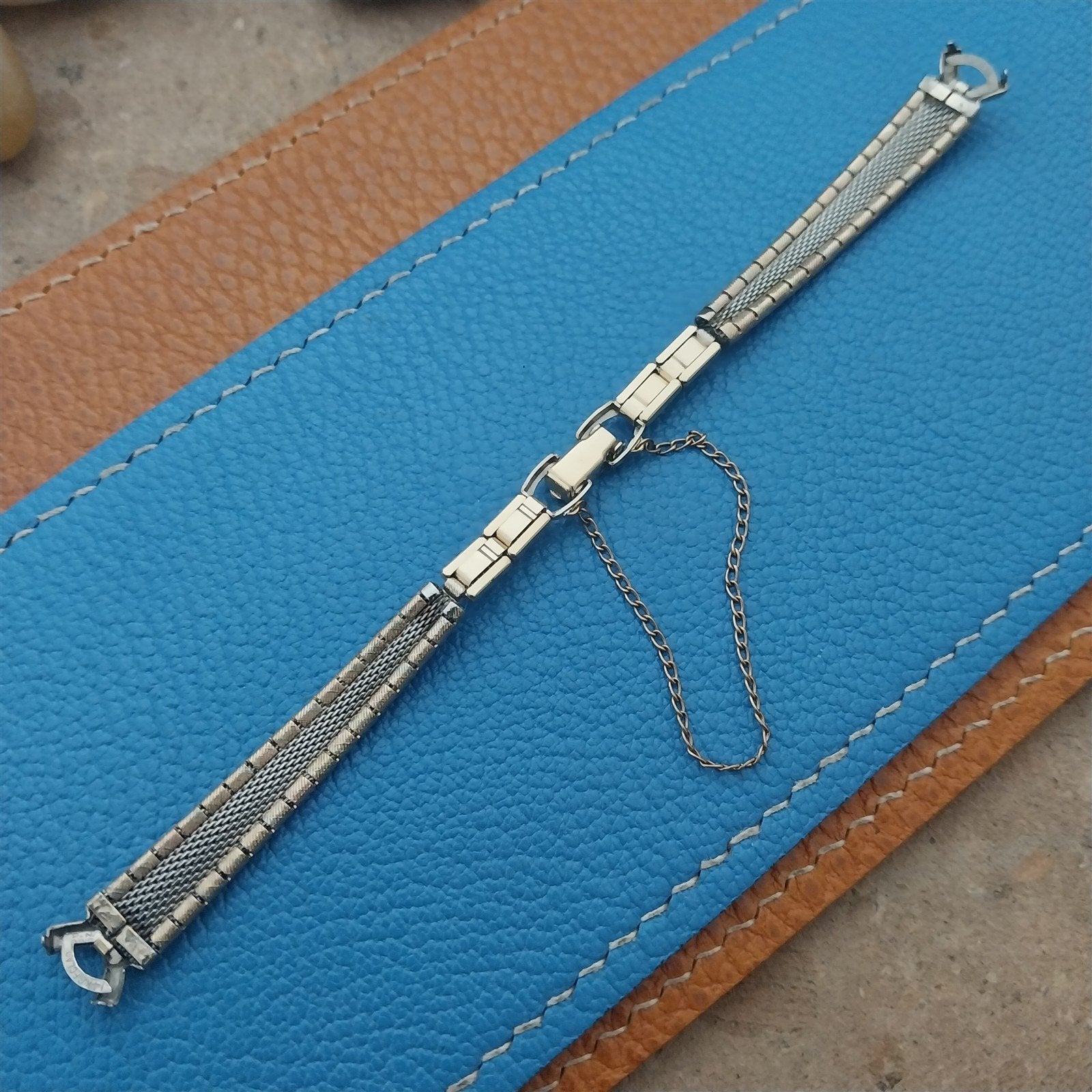 - NOS unused old-stock 1950s-1960s Speidel Rainbow 14K yellow white & pink gold-clad cocktail watch bracelet.