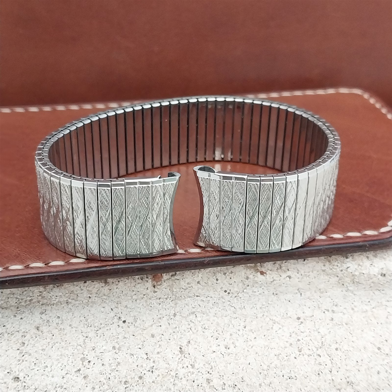 - NOS unused 1970s old-stock long Speidel stainless steel Thinline Twist-O-Flex expansion watch bracelet.