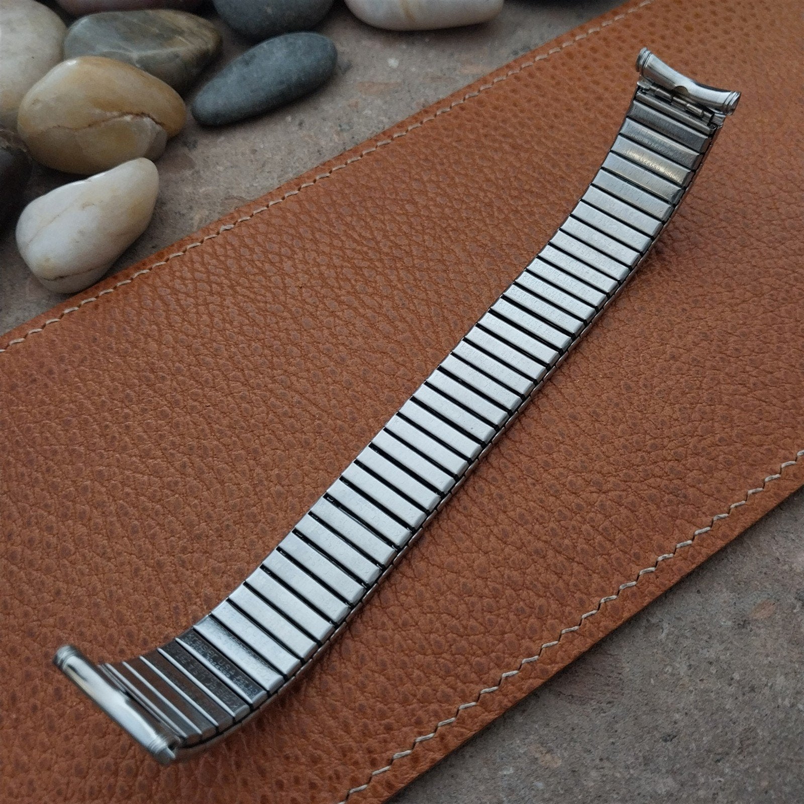 - NOS unused long 1960s old-stock Kreisler stainless steel Duraflex stretch expansion watch bracelet.
